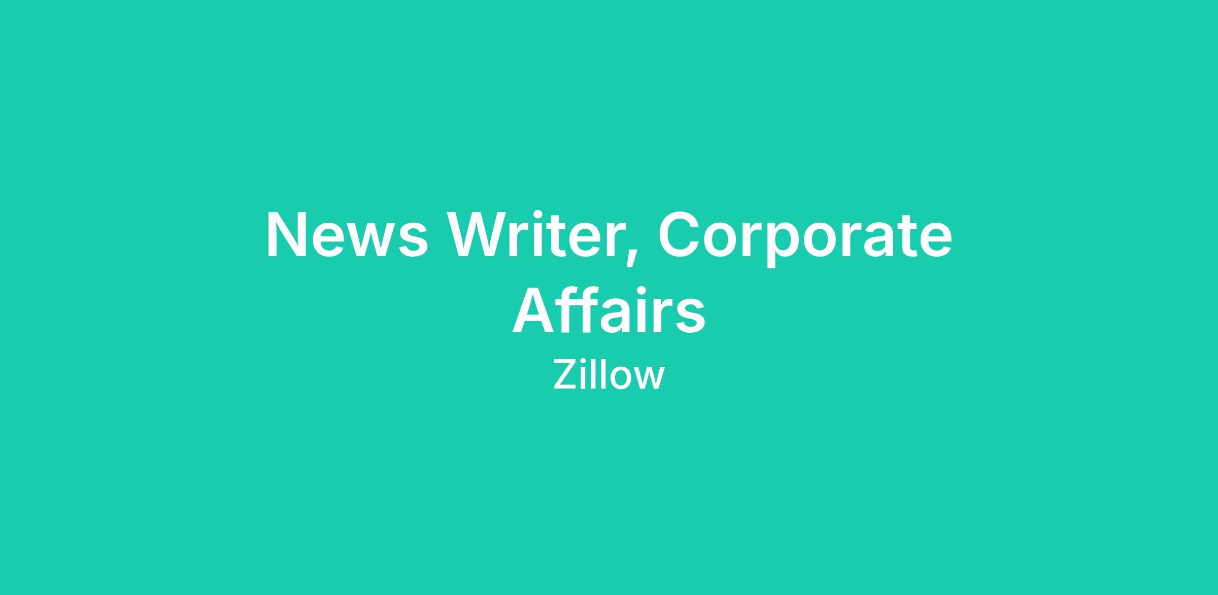 We’re looking for a News Writer to join Zillow’s Corporate Affairs team and help power Zillow’s company news site — a central channel for breaking important company news, providing clear and accurate information, and serving as a reliable source of record for key developments and decisions. Over time, this site is intended to be a go-to destination for understanding what’s happening at Zillow and why it matters.