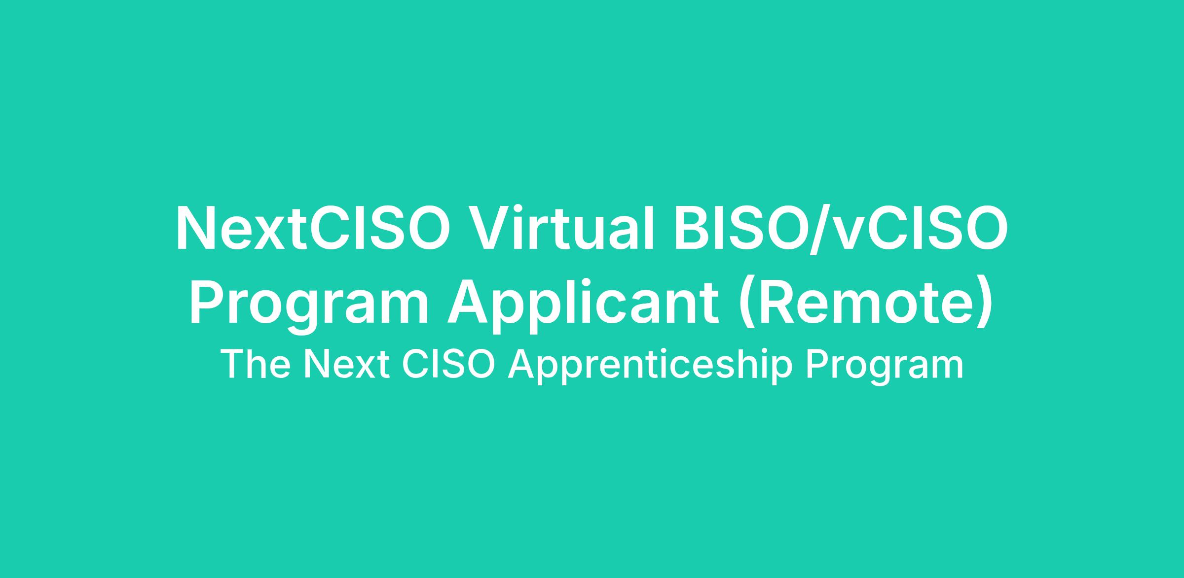 NextCISO Virtual BISO/vCISO Program Applicant (Remote)