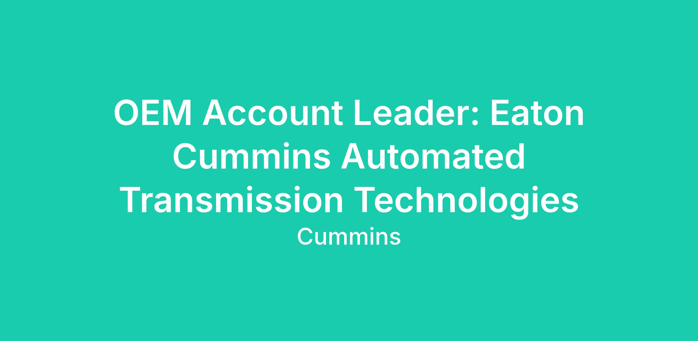 OEM Account Leader: Eaton Cummins Automated Transmission Technologies