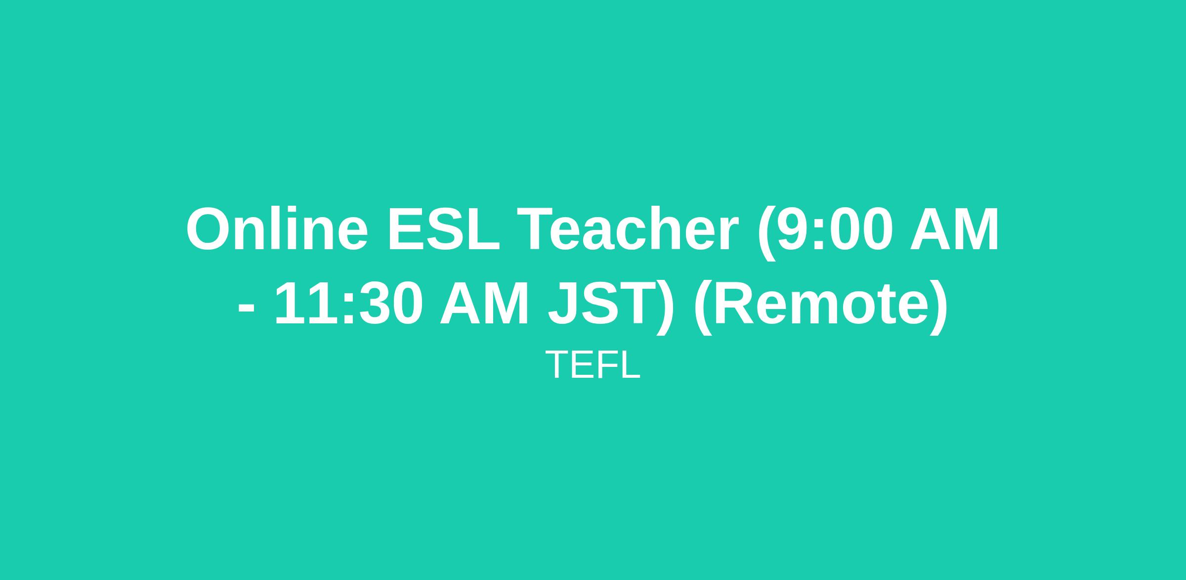 Online ESL Teacher (9:00 AM - 11:30 AM JST) (Remote)
