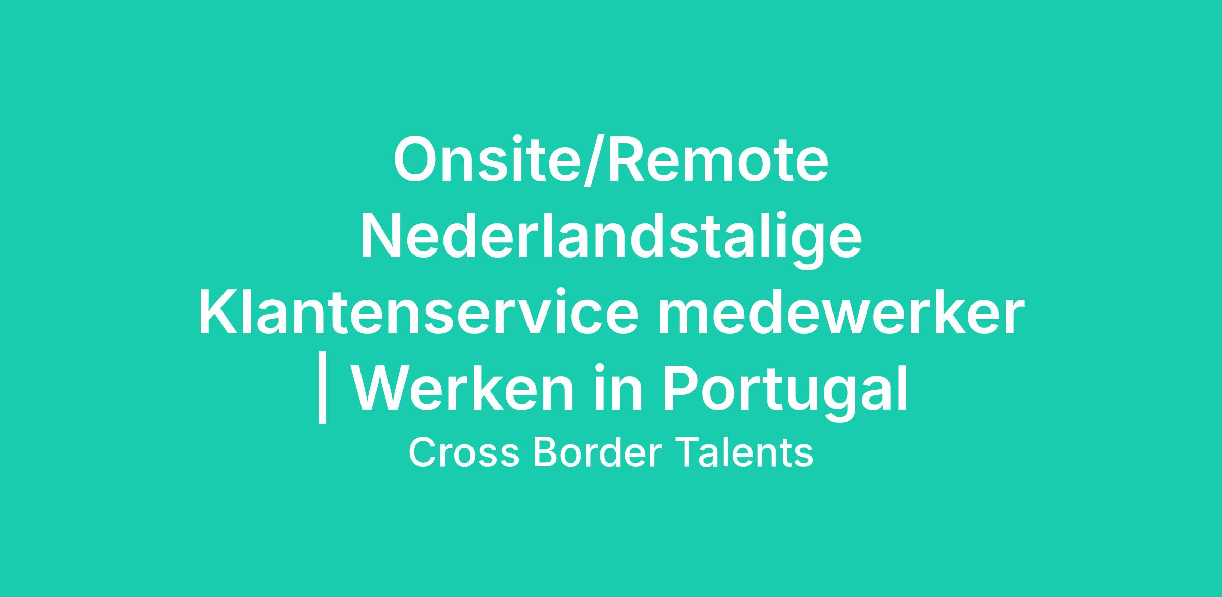 Nederlandstalige Customer Support Agent | Remote of Onsite in Portugal