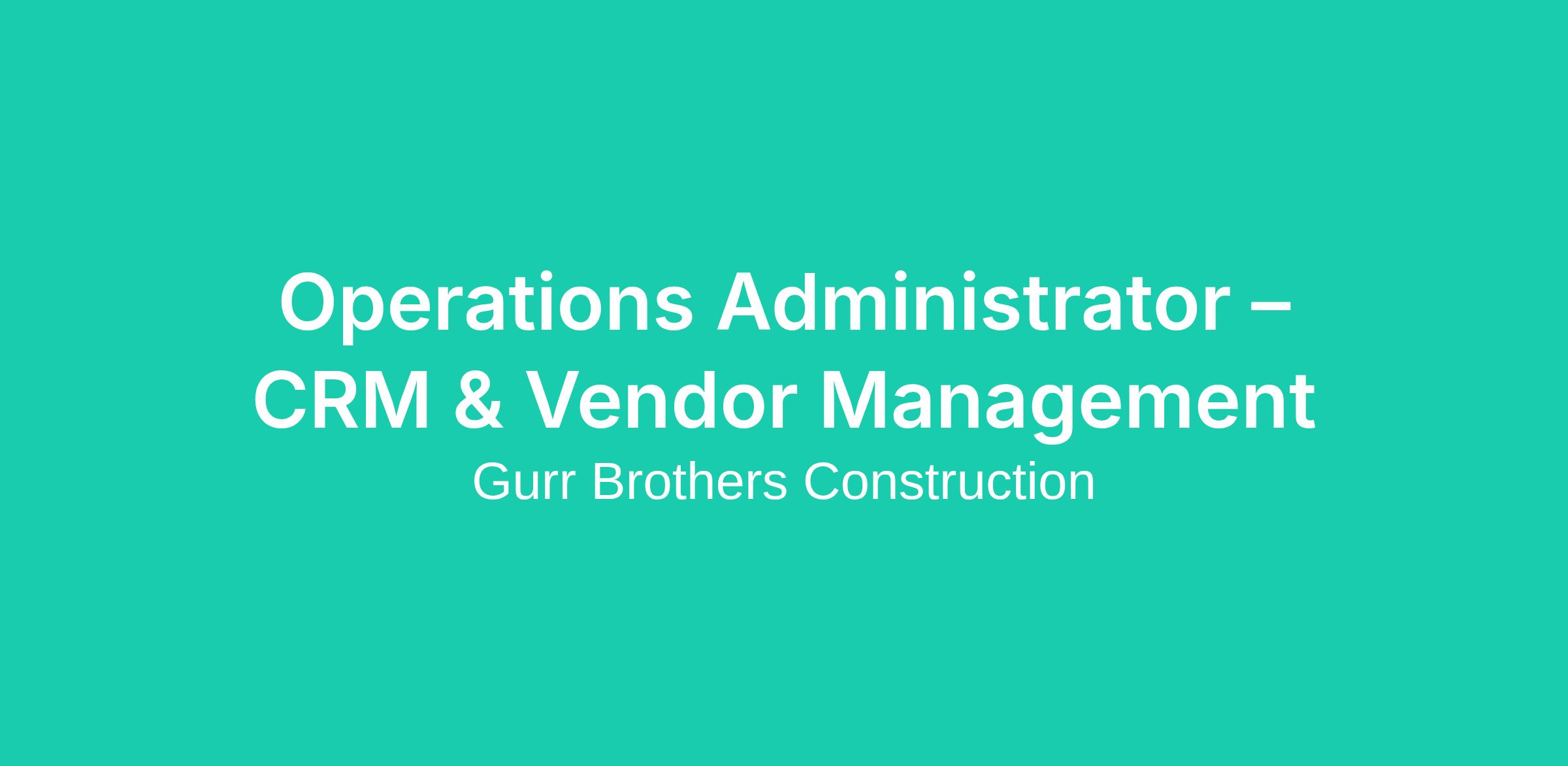 The Operations Administrator – CRM & Vendor Management is a mid-to-senior level operations role focused on CRM administration and vendor management. This position serves as a subject-matter resource for CRM systems and plays a key role in maintaining system integrity, vendor compliance, and operational efficiency.