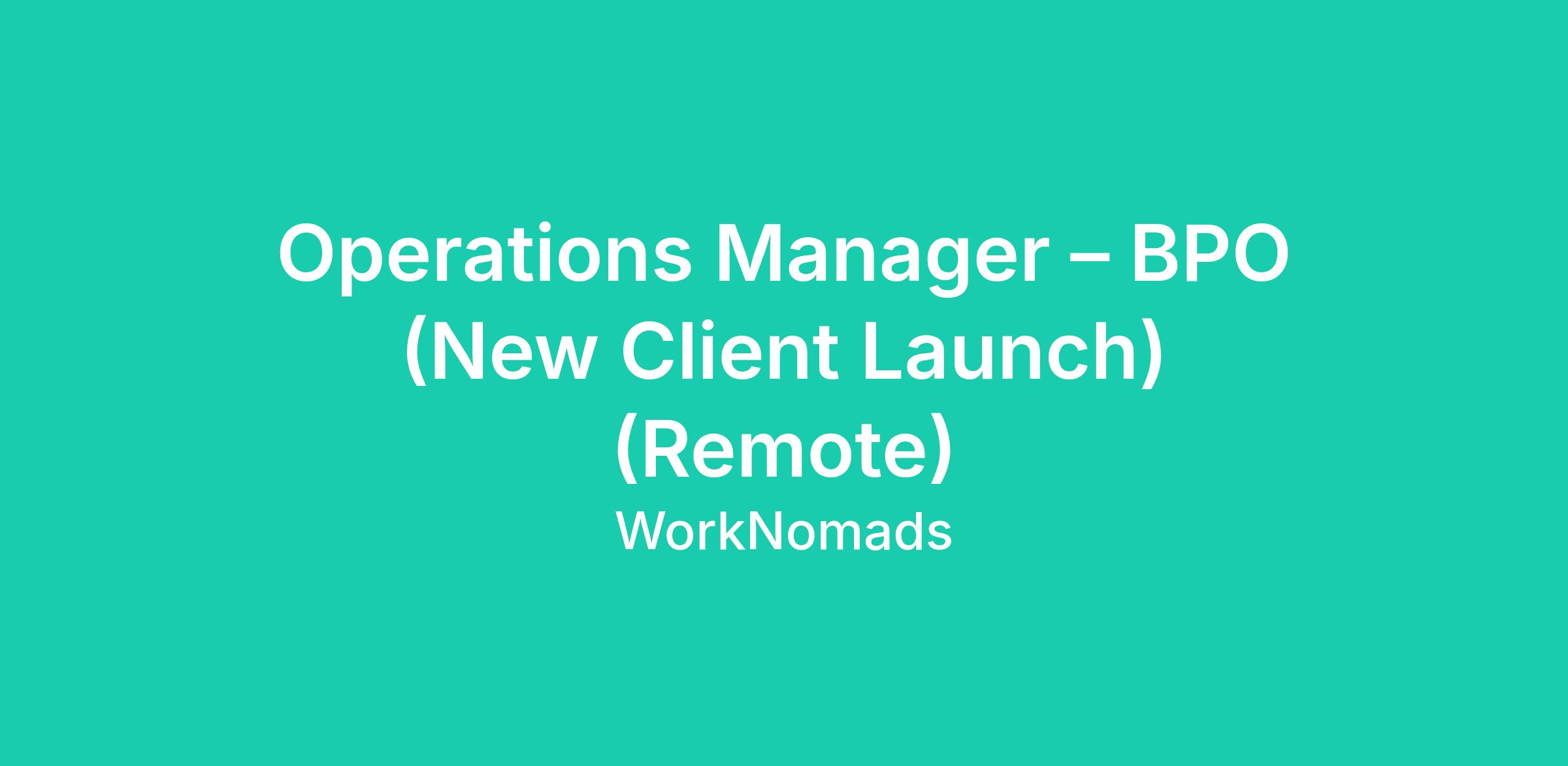 Operations Manager – BPO (New Client Launch) (Remote)