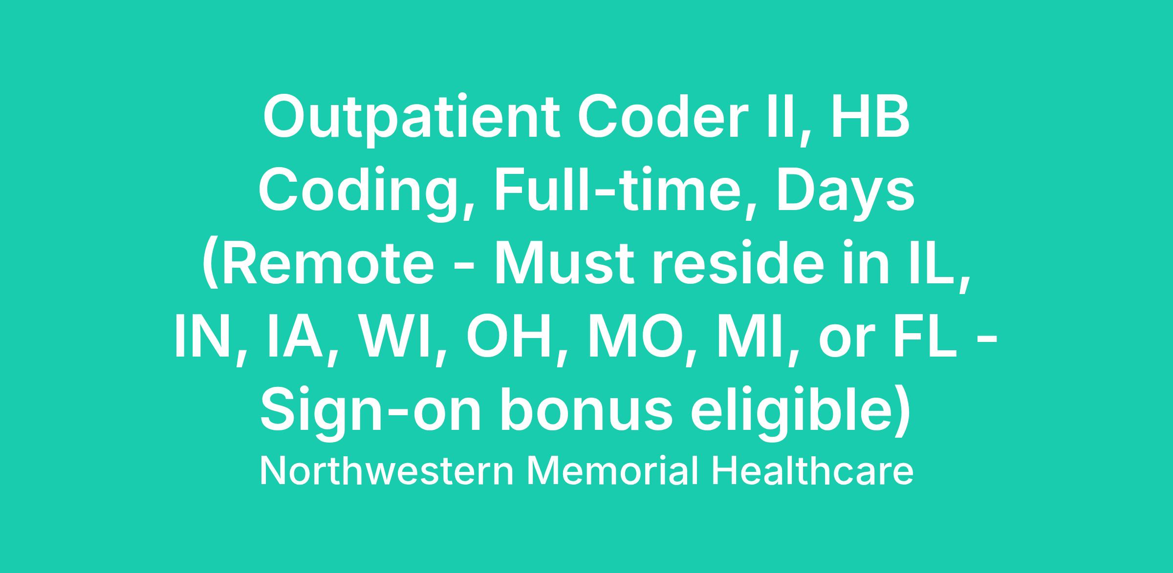 The Outpatient Coder II is the coding and reimbursement expert with ICD-10-CM diagnosis coding, HCPCS and CPT codes and modifiers. The focus is on complex outpatient encounters that include Observation stays, Same Day Surgery, Surgery Center, and Outpatient in a bed. Should have more in-depth knowledge of disease process, A&P and pharmacology as it relates to the entire body system for accurate coding and reimbursement. Expanded knowledge with HCPCS, Level I, II Chargemaster and CPT soft codes with approved facility modifiers to resolve NCCI Edits. Coder II should also have the knowledge and expertise of Coder Associate and Coder I.