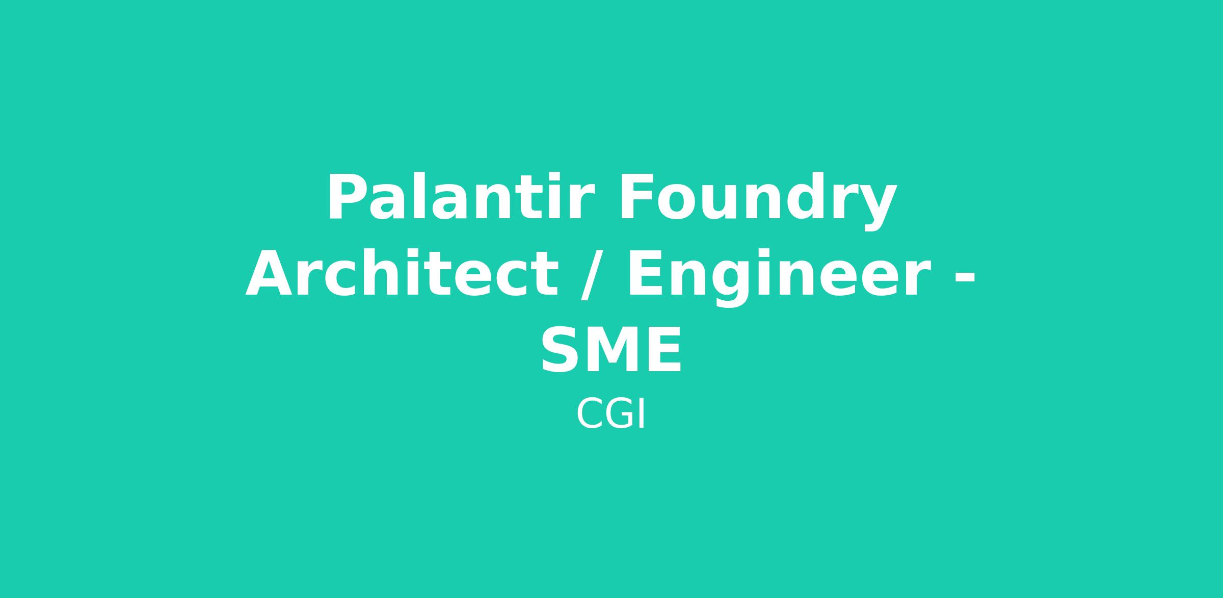 CGI is seeking a Palantir Foundry Architect / Engineer to act as a Subject Matter Expert during an implementation project.