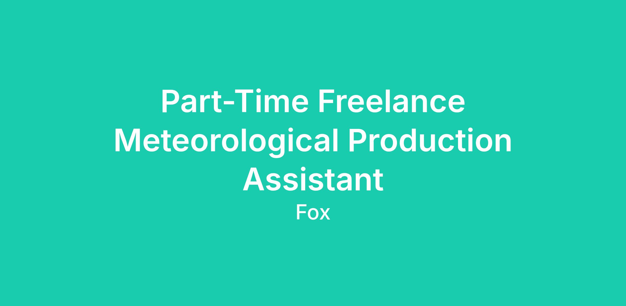 Fox WeatherFOX Weather is a 24/7 ad-supported streaming service operated by FOX News Media. Launched in October 2021, the platform builds upon FOX News Channel’s expansive newsgathering units & FOX Television Stations’ added resources with a combined 120 meteorologists for a comprehensive suite of weather products featuring local, regional and national reporting, in addition to live programming. Utilizing multiple radar systems, including an immersive mobile 3D radar, and more than 100,000 HD cameras located around the country, the service offers users an innovative approach to forecasting, including coverage surrounding all weather patterns, from immediate to long-term. FOX Weather is available via foxweather.com, the FOX Weather app on IOS and Android devices, as well as Tubi, Apple TV, Amazon, and Roku, through FOX’s Connected TV Apps.FOX Weather is looking for a Freelance Meteorologist Production Assistant to join the team!
