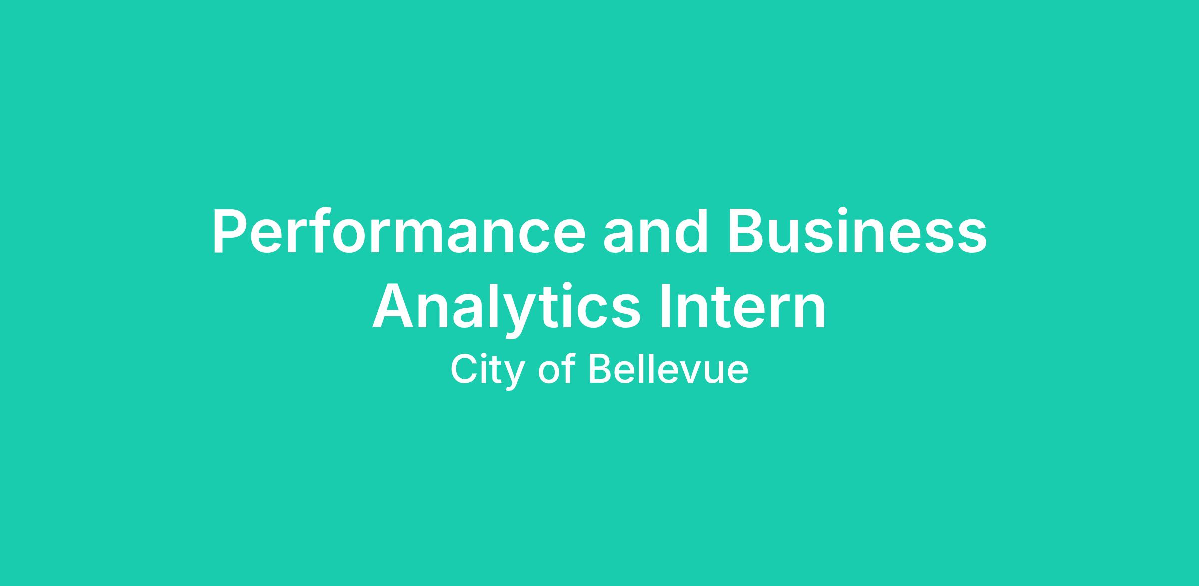 The internship position is located within the city’s Finance & Asset Management Department, which is home to the Business Systems and Intelligence Team. The Business Systems and Intelligence Team connects performance management, continuous improvement, and data analytics, and supports the city as a whole in their journey to be more data informed, transparent, and responsive to their customers. The Business Systems and Intelligence team does this by helping the City of Bellevue answer three questions: