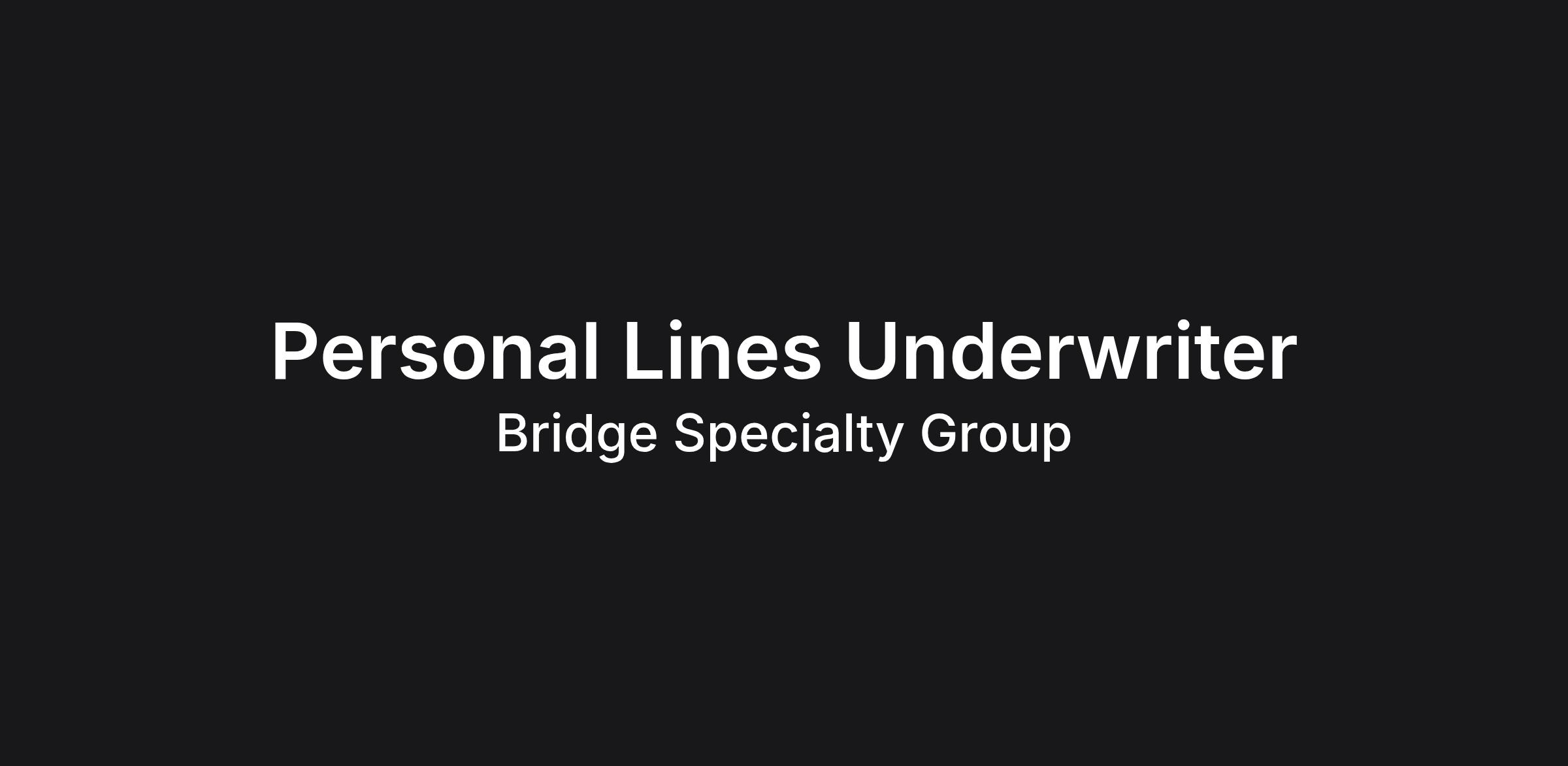 Bridge Specialty Group is seeking a Personal Lines Underwriter to join our growing team!