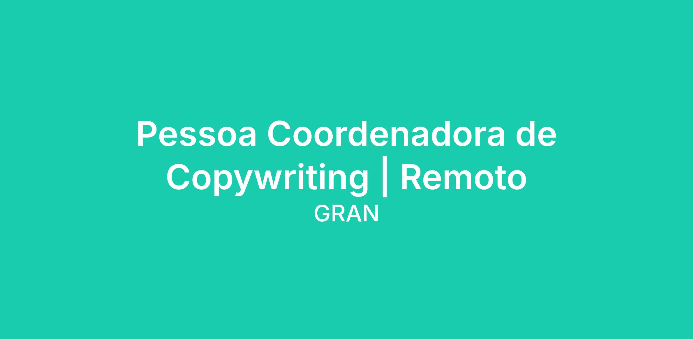 DescriptionEstamos em busca de uma pessoa Coordenadora de Copywriting para compor o time de branding do Gran e mudar vidas com a gente!