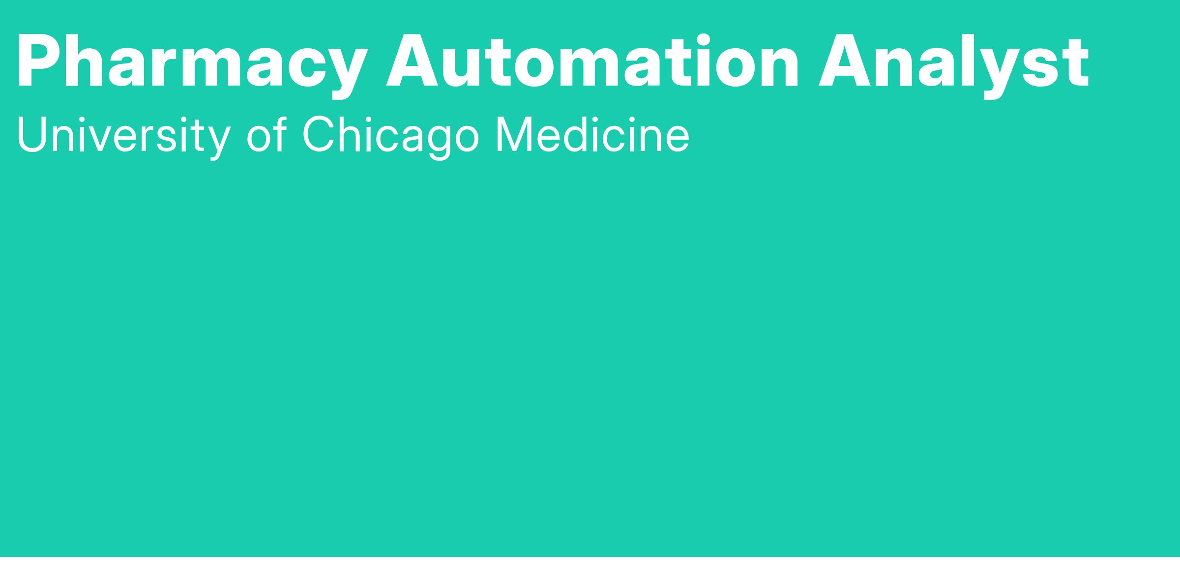 Be a part of a world-class academic healthcare system, UChicago Medicine, as a Pharmacy Automation Analyst in Pharmacy Informatics. As a Pharmacy Automation Analyst, you will be the Primary resource for providing automation auditing, system optimization, workflow optimization and new system implementations for the pharmacy department.