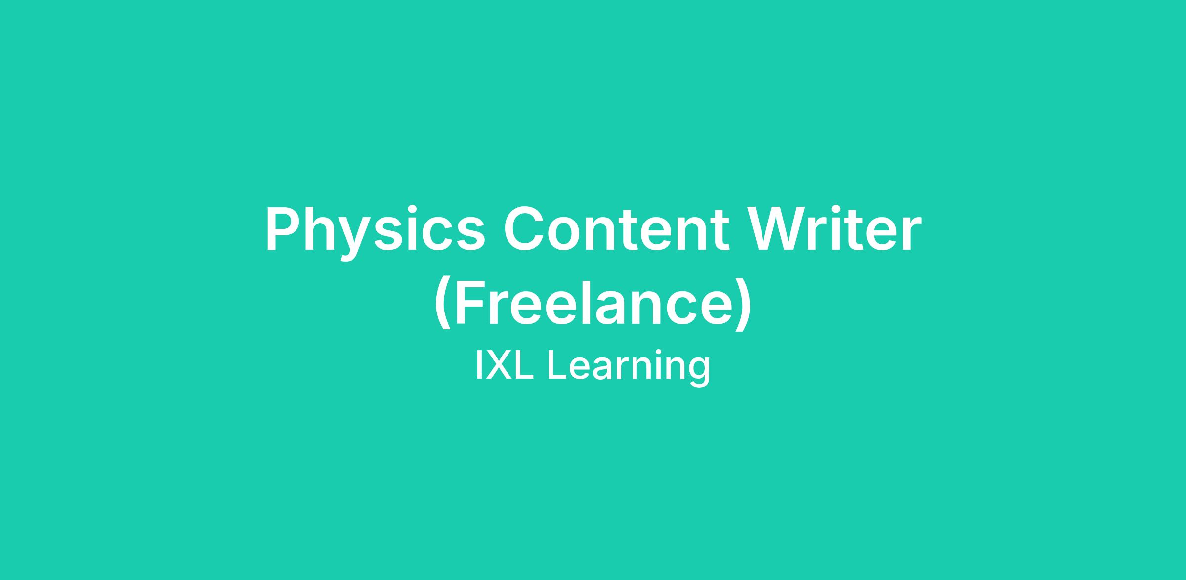 IXL Learning, developer of personalized learning products used by millions of students and teachers globally, is seeking creative, motivated physics curriculum writers to join our science content development team. In this role, you will work closely with editors and curriculum designers to create engaging instructional content for high school physics.