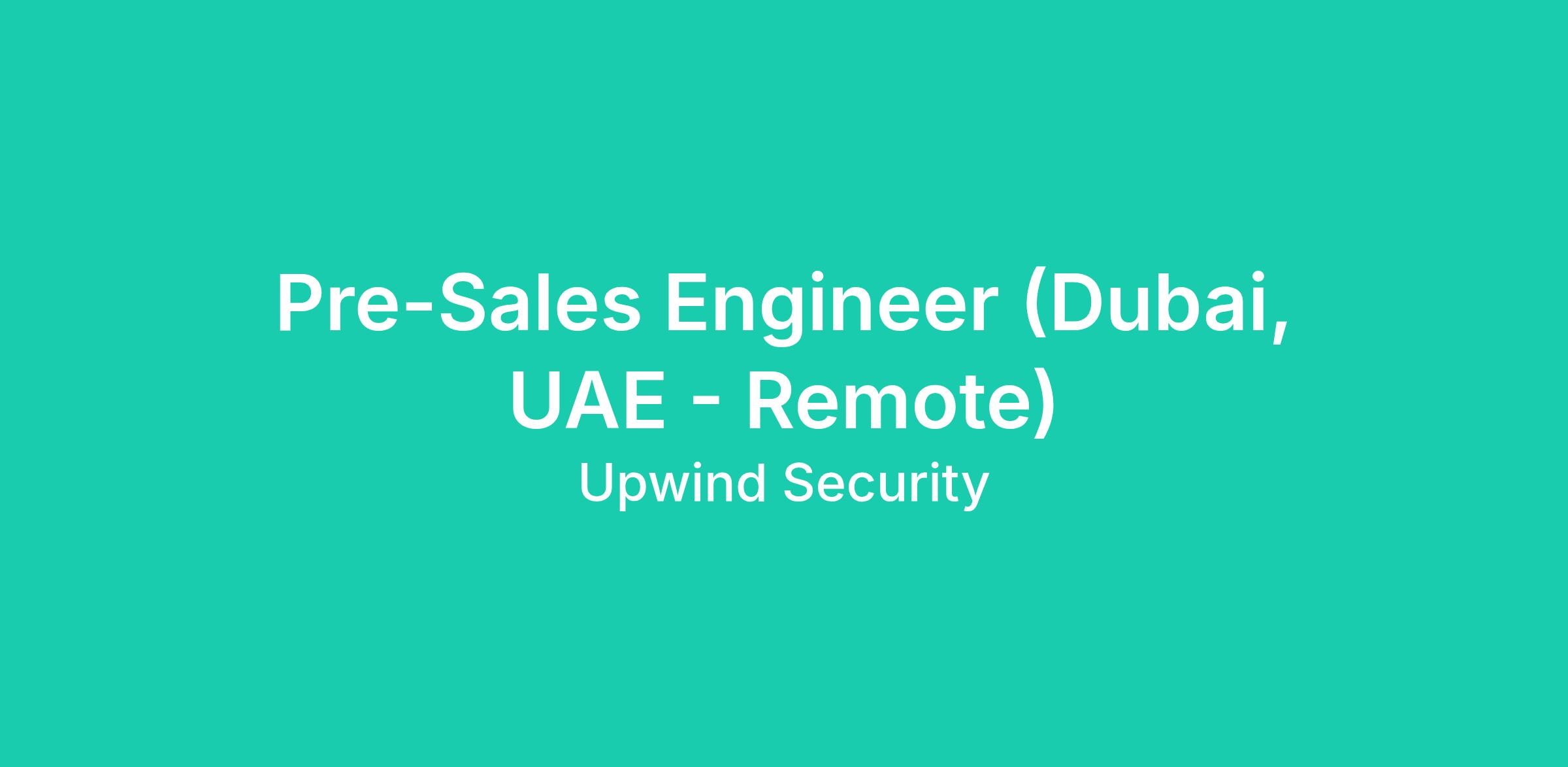 Pre-Sales Engineer (Dubai, UAE - Remote)