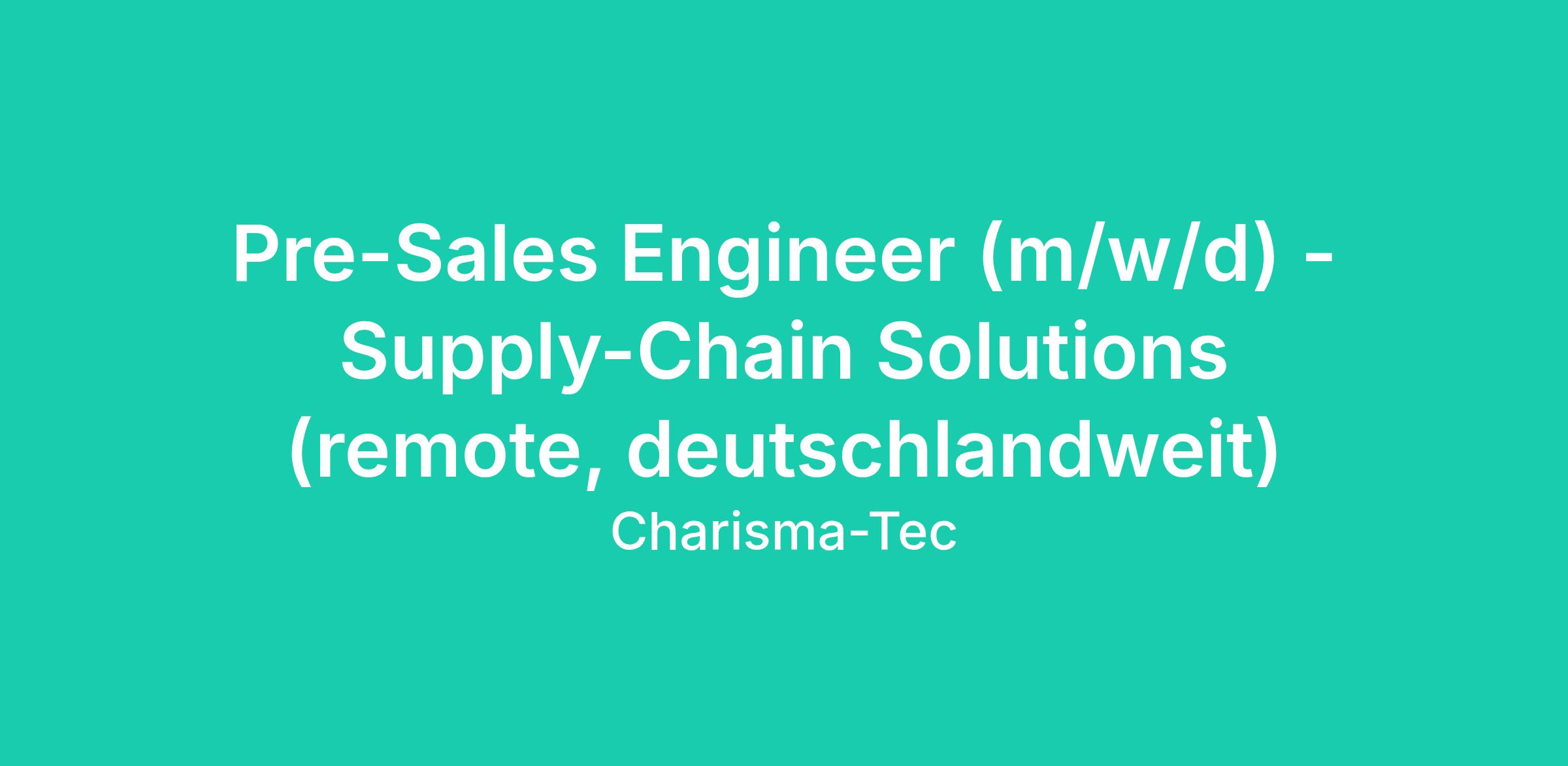 Pre-Sales Engineer (m/w/d) - Supply-Chain Solutions (remote, deutschlandweit)