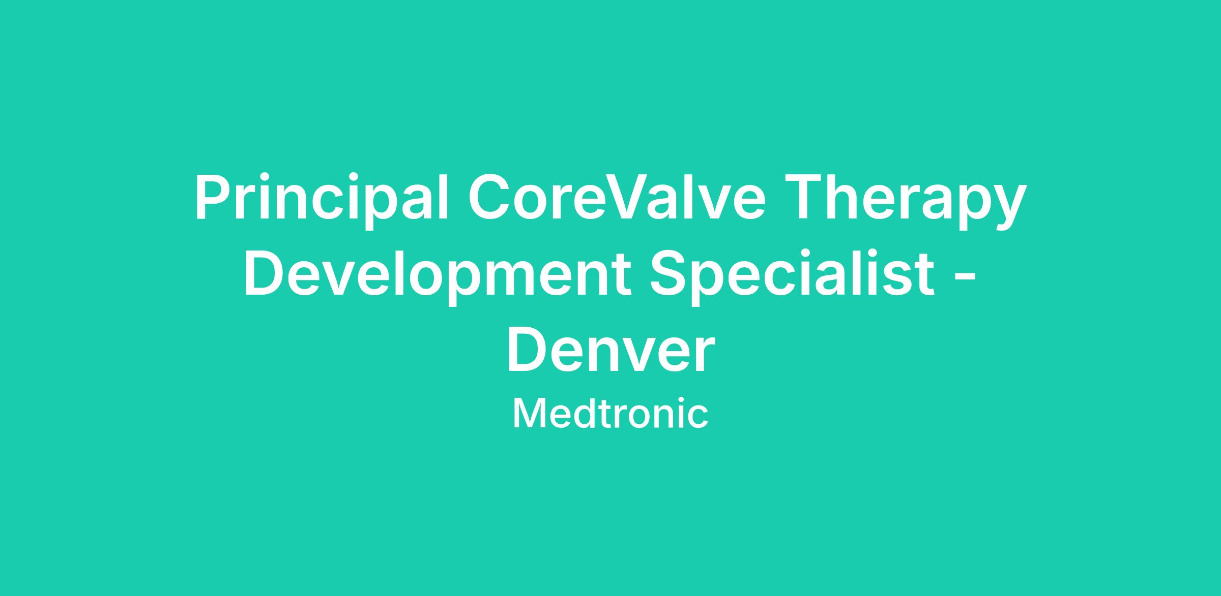 The CoreValve Principal Therapy Development Specialist (TDS) provides technical, clinical, educational and sales support to ensure safe adoption and growth of the Medtronic CoreValve System and future catheter-based therapy technologies. The CoreValve Therapy Development Specialist works closely with implanting teams and the Medtronic Catheter-Based Therapies (CBT) and CVG field organizations to drive procedural and practice success.