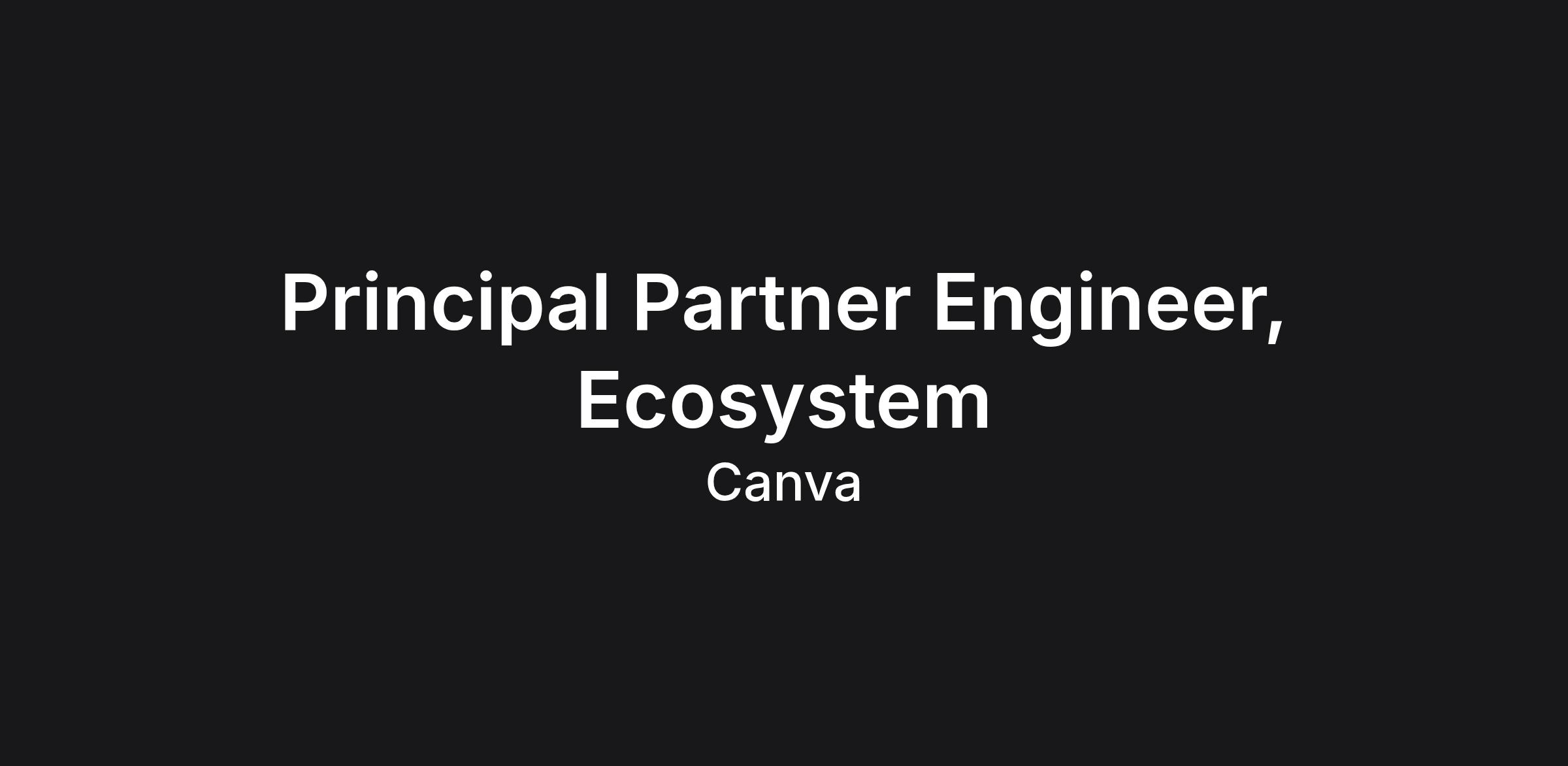 This role sits in the Ecosystem supergroup. Ecosystem owns Canva's external platform surface: MCP, REST APIs, Apps-in-Canva, and the middleware PaaS. Ecosystem is ~150 engineers (and ~200 people overall) across developer experience, apps, and platform APIs, plus a Solutions group that covers toolkits solutions engineering and Systems Integrators. This role works closely with the Ecosystem leadership team, and partners directly with our Head of Partnerships on flagship partner engagements.