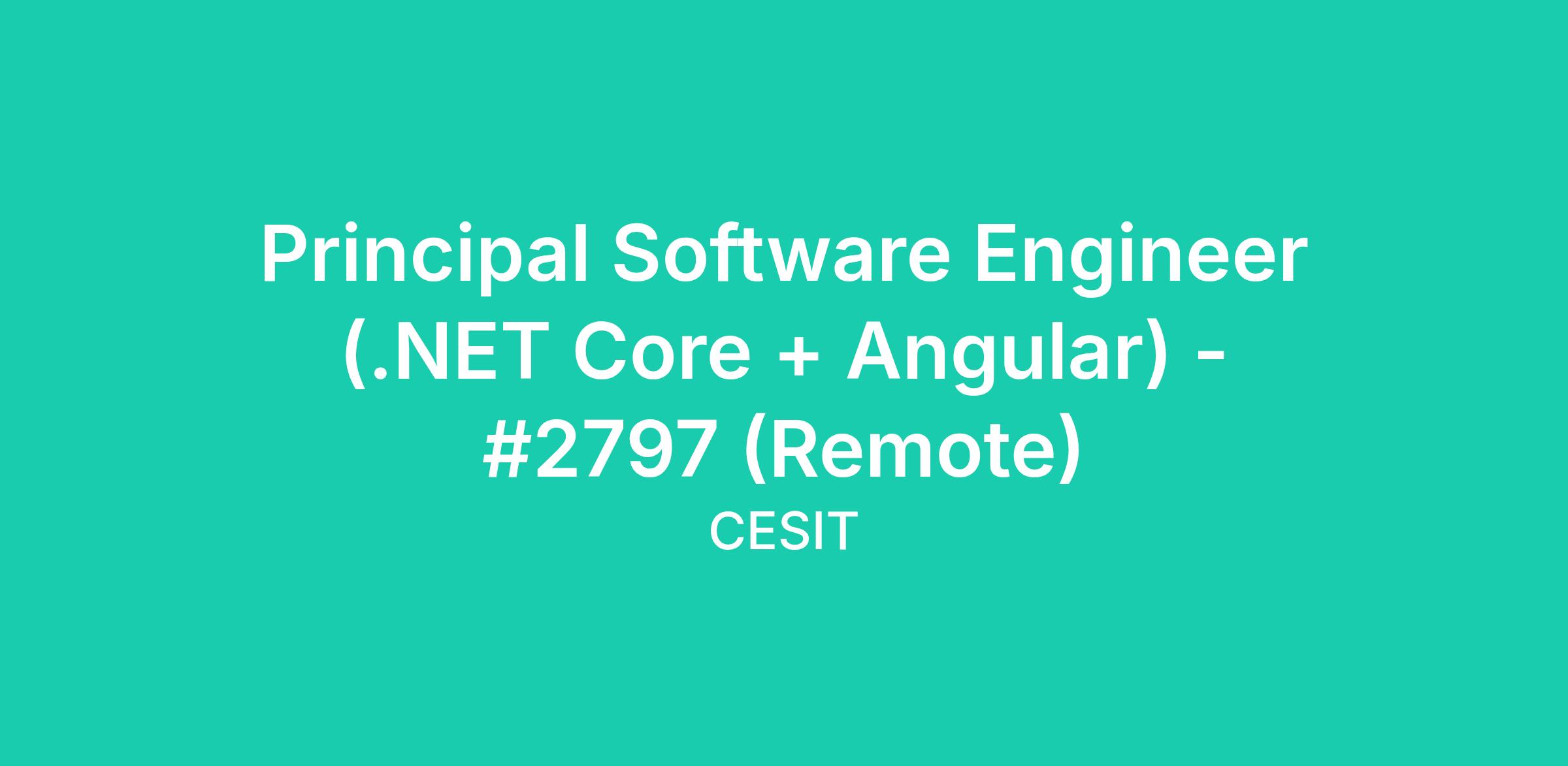 Principal Software Engineer (.NET Core + Angular) - #2797 (Remote)