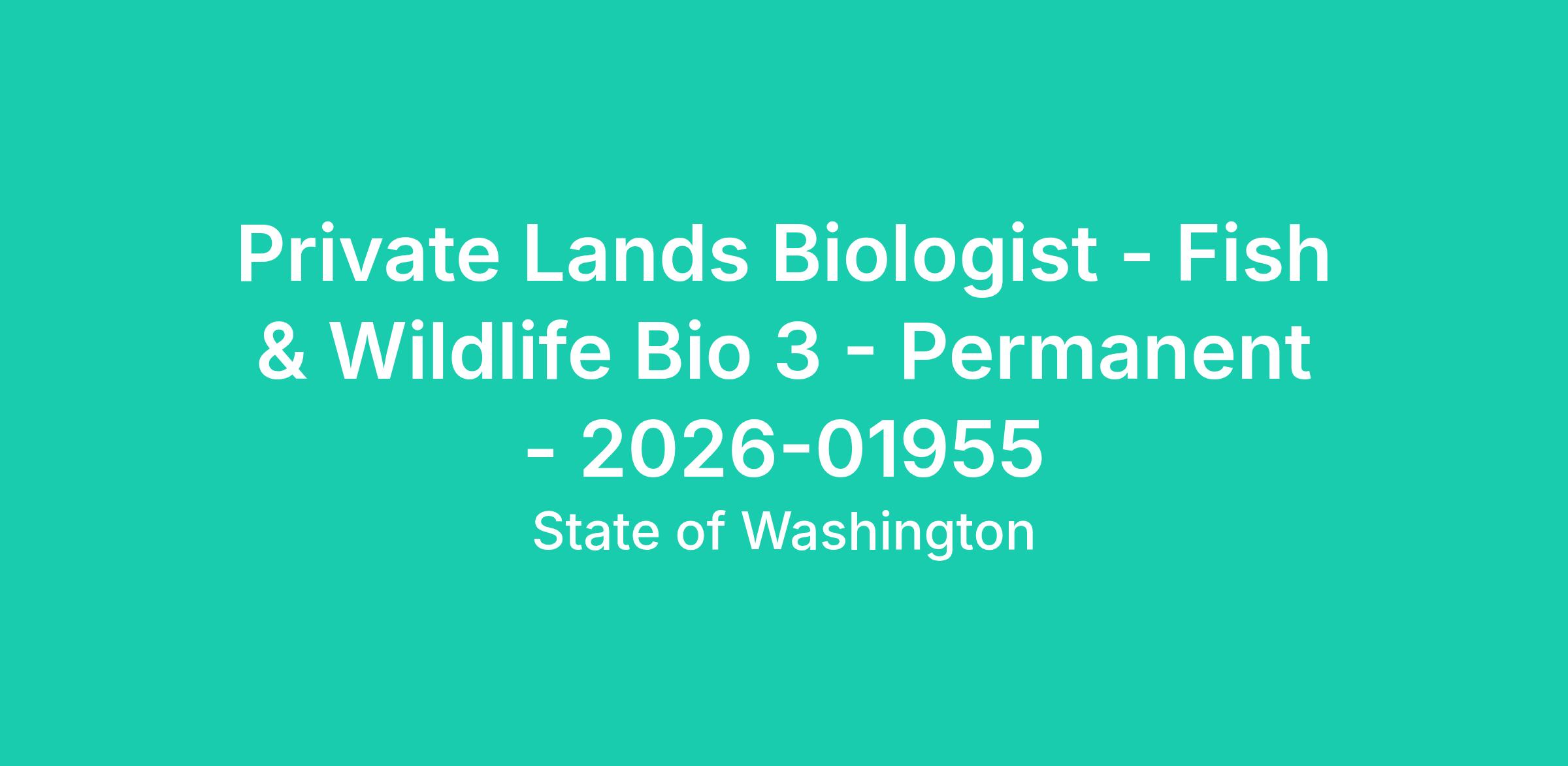 Other questions: If you have other questions regarding this position, please reach out to diana.humes@dfw.wa.gov and reference job #2026-01955