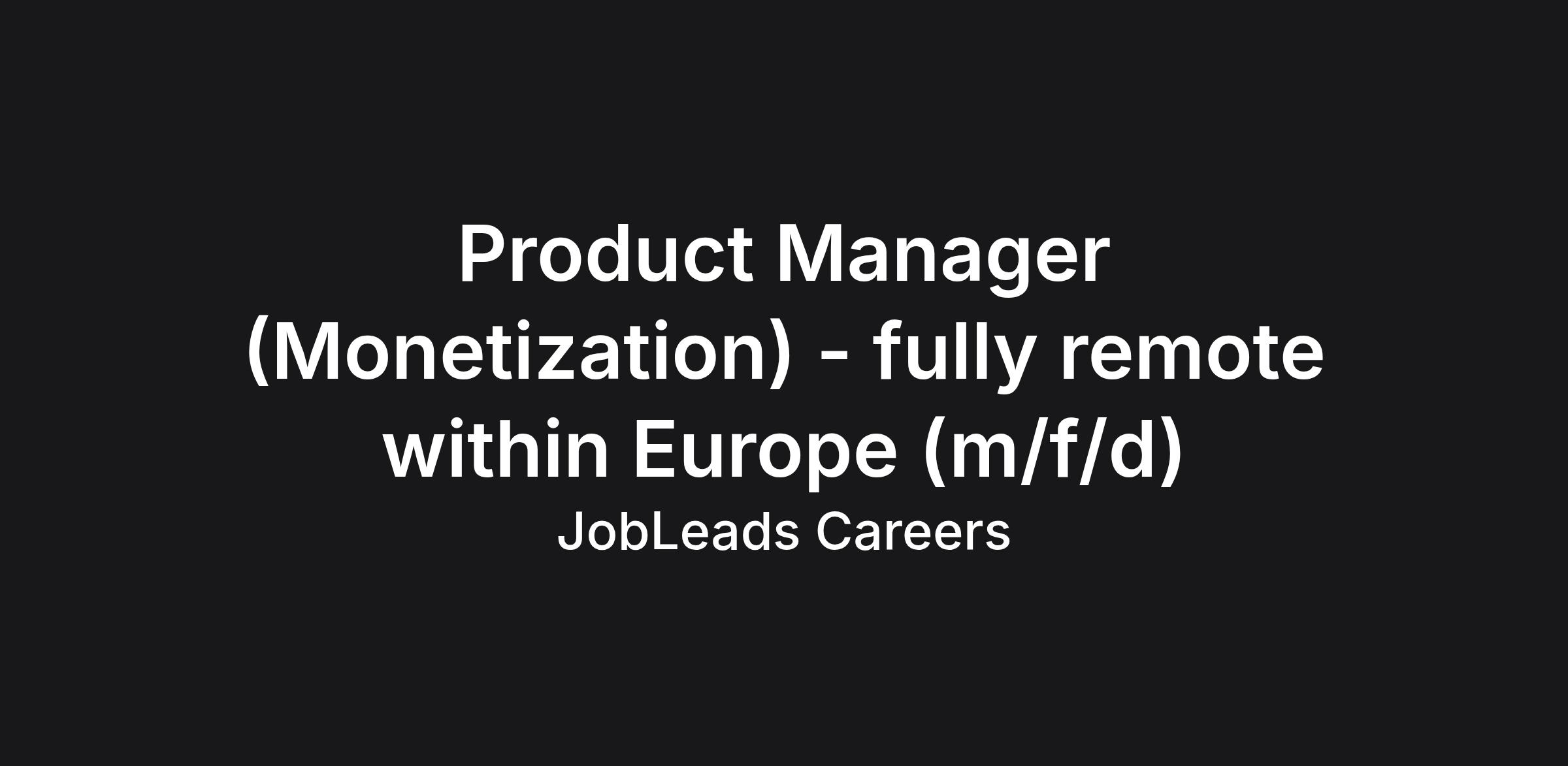 Product Manager (Monetization) - fully remote within Europe (m/f/d)