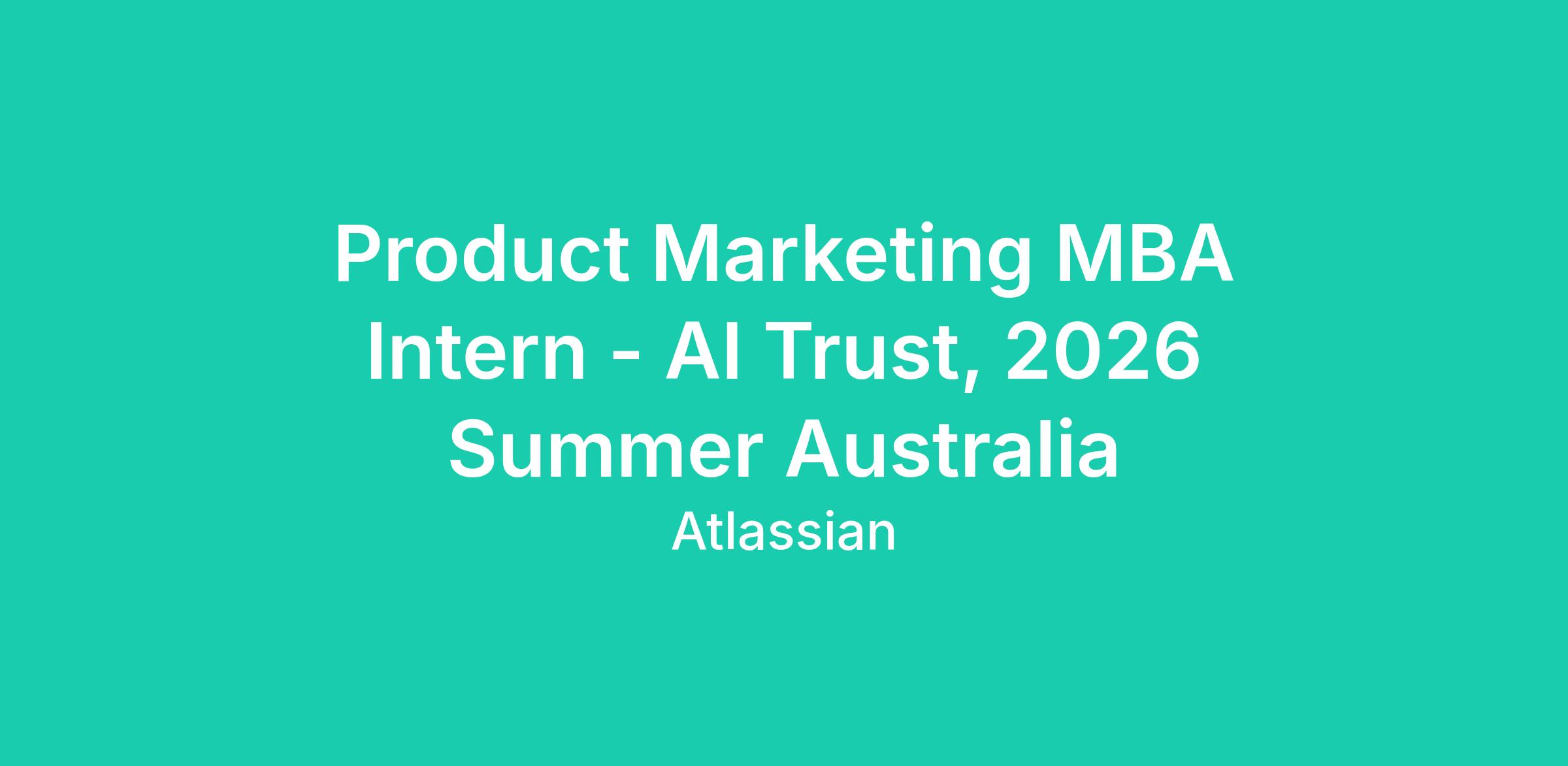 As our Product Marketing MBA Intern, AI Trust, you will report to the Trust Product Marketing team, working closely with other marketers, product managers, data scientists, sales, designers, and cross-functional GTM partners. You’ll help Atlassian sharpen our AI trust narrative and competitive position for products like Rovo by digging into how the market talks about AI trust, benchmarking competitors, and translating your insights into clear recommendations and content. Your work will help drive enterprise adoption of AI within Atlassian’s customer base.