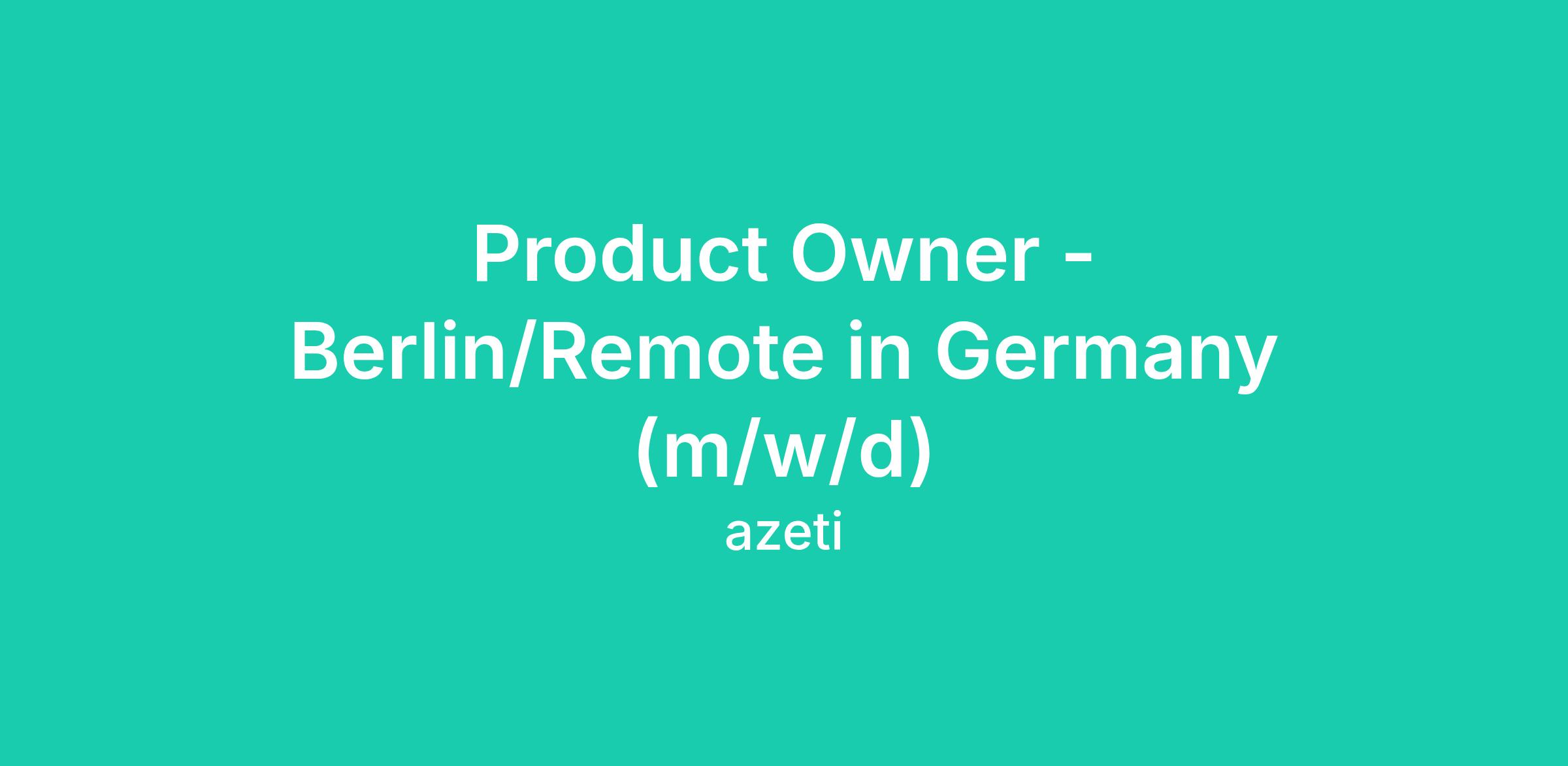 Product Owner - Berlin/Remote in Germany (m/w/d)
