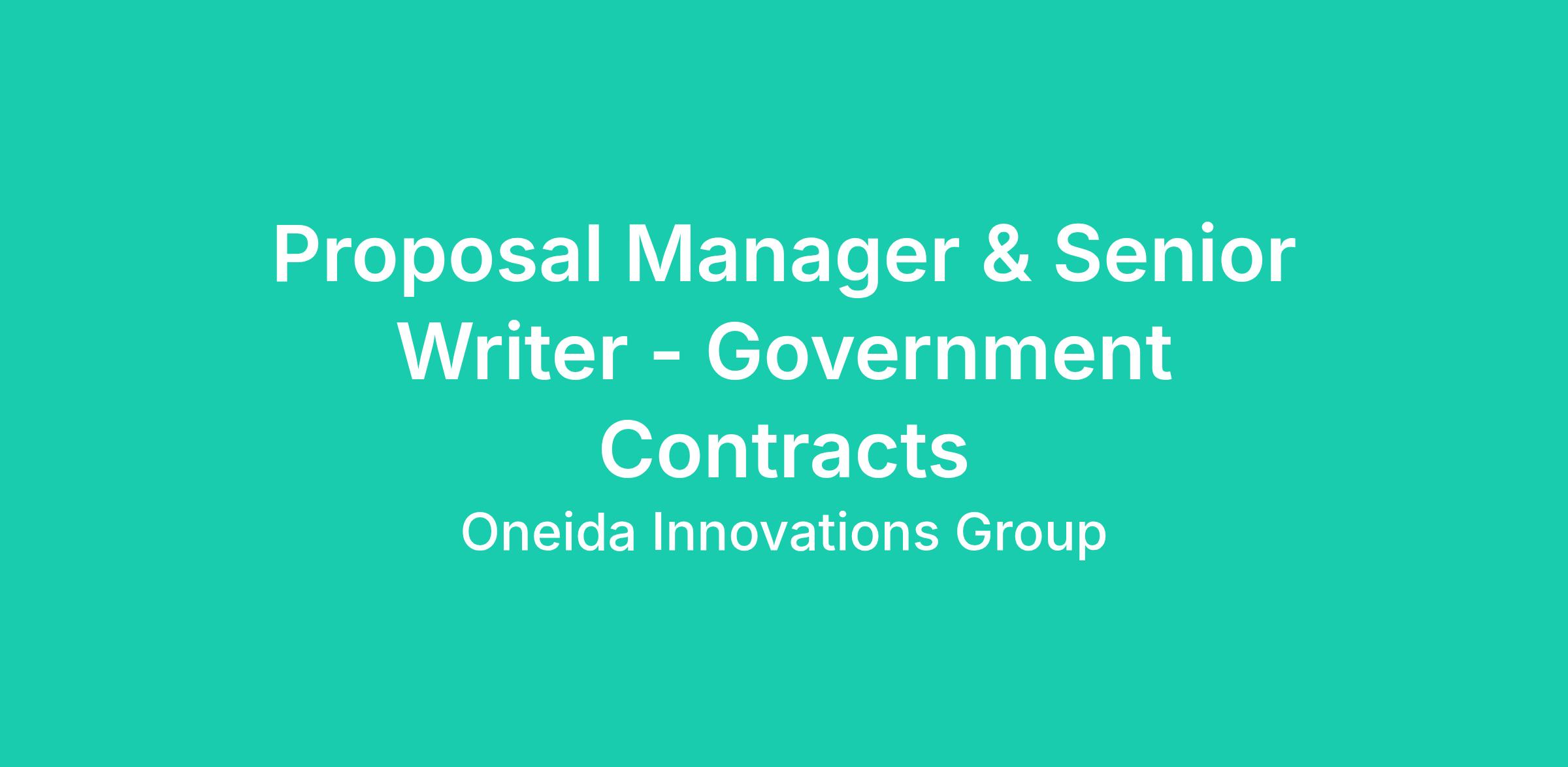 The Proposal Manager & Senior Writer will be responsible for both managing proposals and authoring a wide variety of proposal content to support the needs of Oneida Innovations Group's growing Business Development team. The successful candidate will have proposal development experience with IT service companies, showcasing an ability to author new or edit existing content related to cybersecurity, software development, network and telecommunications engineering, and general IT support services. Experience working in the Federal/DoD space is required.