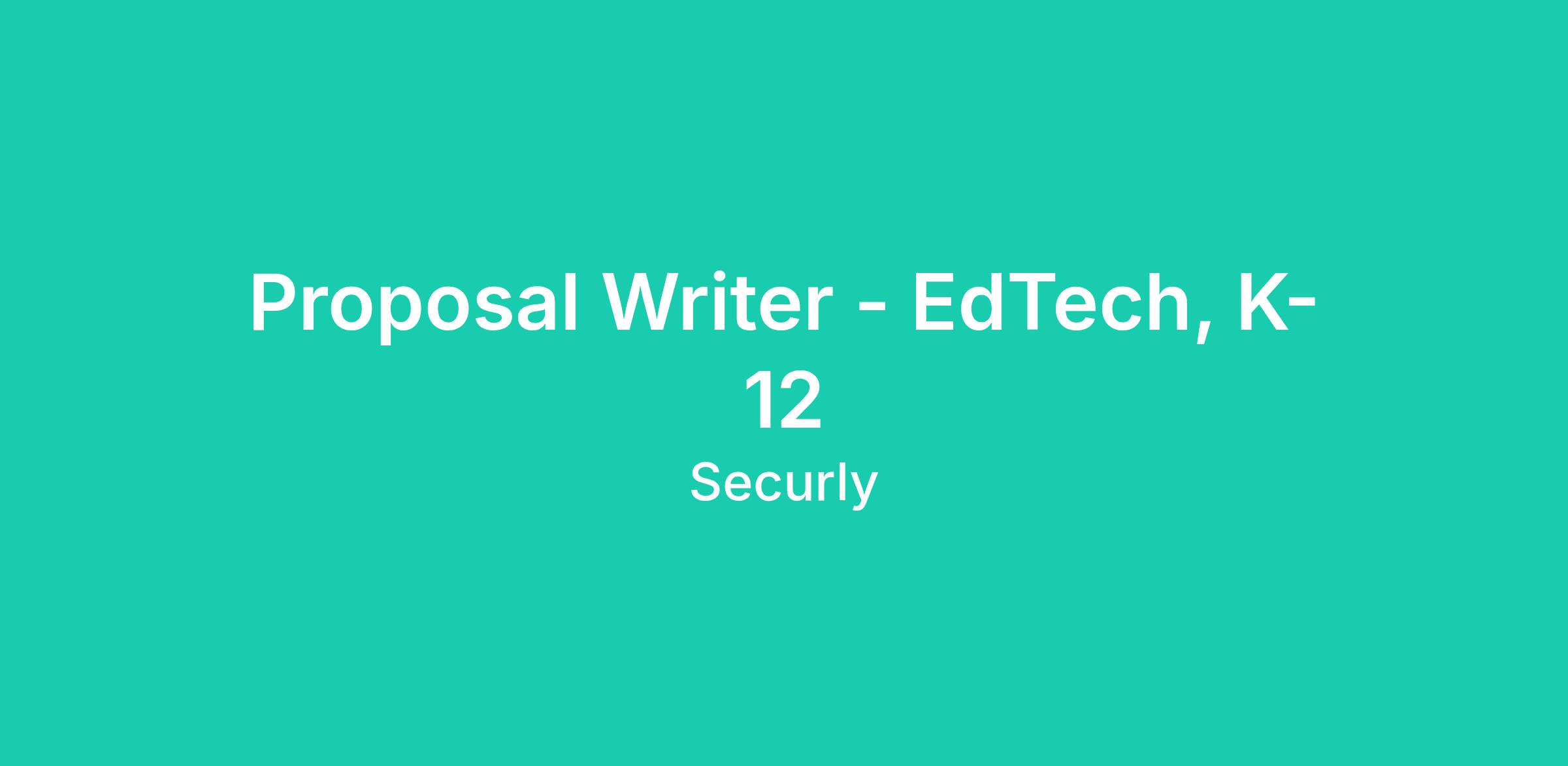 30 Days: Complete training on Securly’s EdTech solutions; assess current proposal workflows and begin managing end-to-end development for initial K-12 proposals.