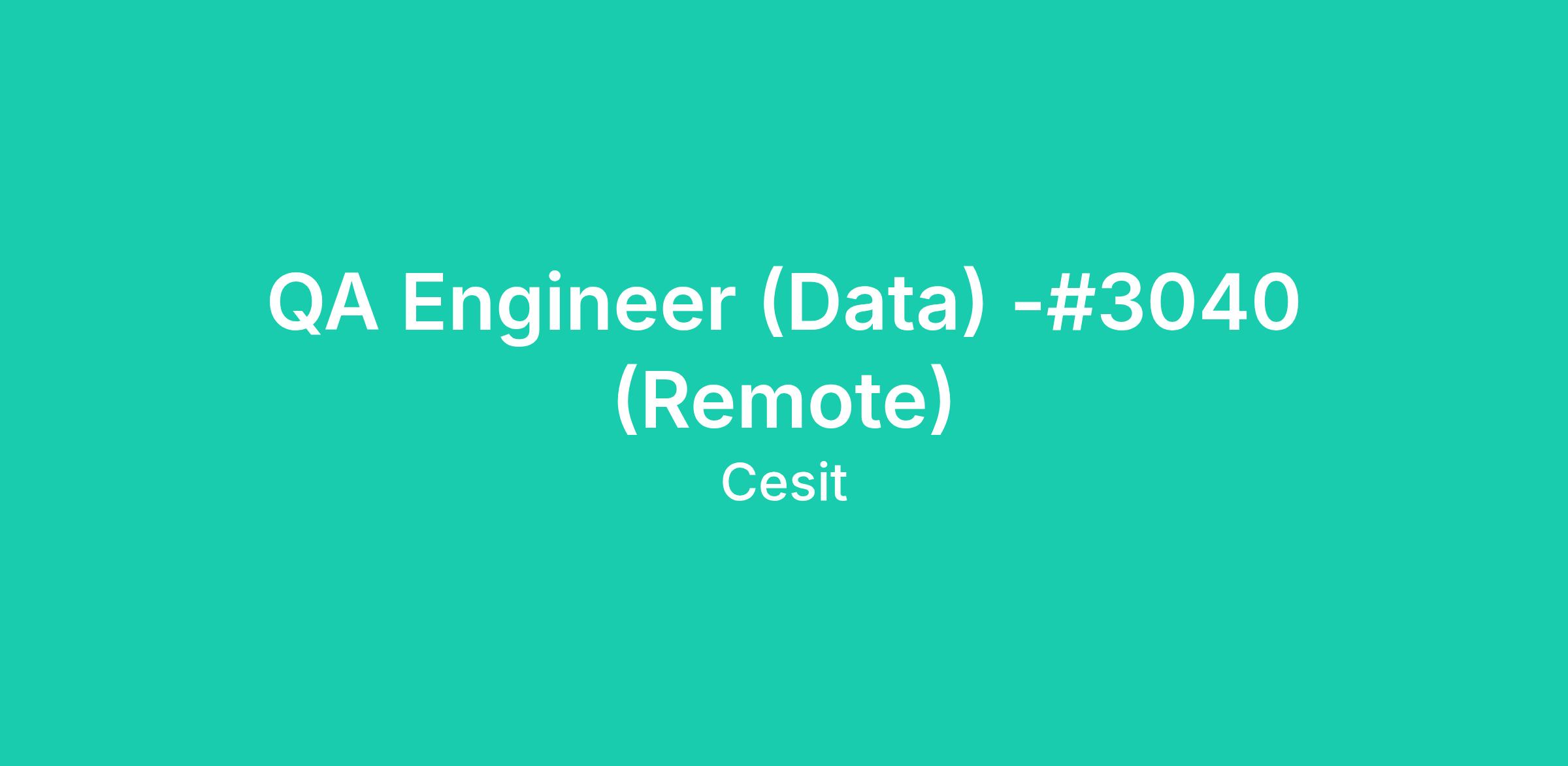 QA Engineer (Data) -#3040 (Remote)