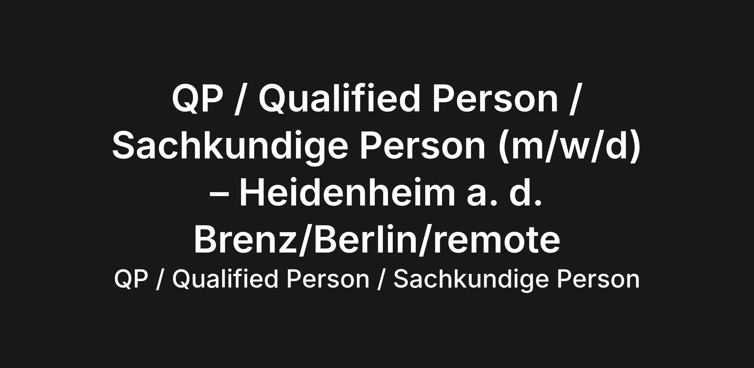 QP / Qualified Person / Sachkundige Person (m/w/d) – Heidenheim a. d. Brenz/Berlin/remote