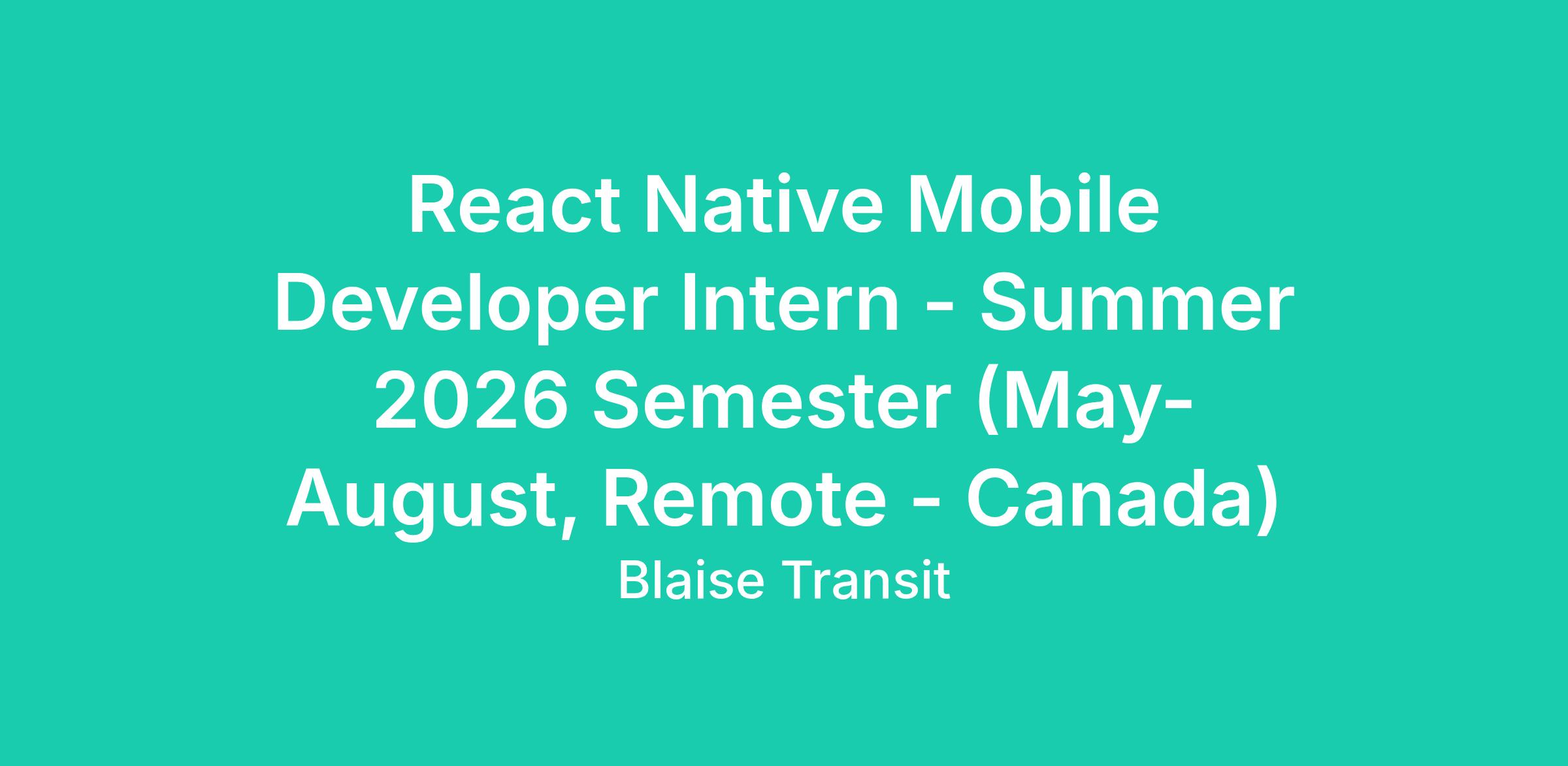 React Native Mobile Developer Intern - Summer 2026 Semester (May-August, Remote - Canada)