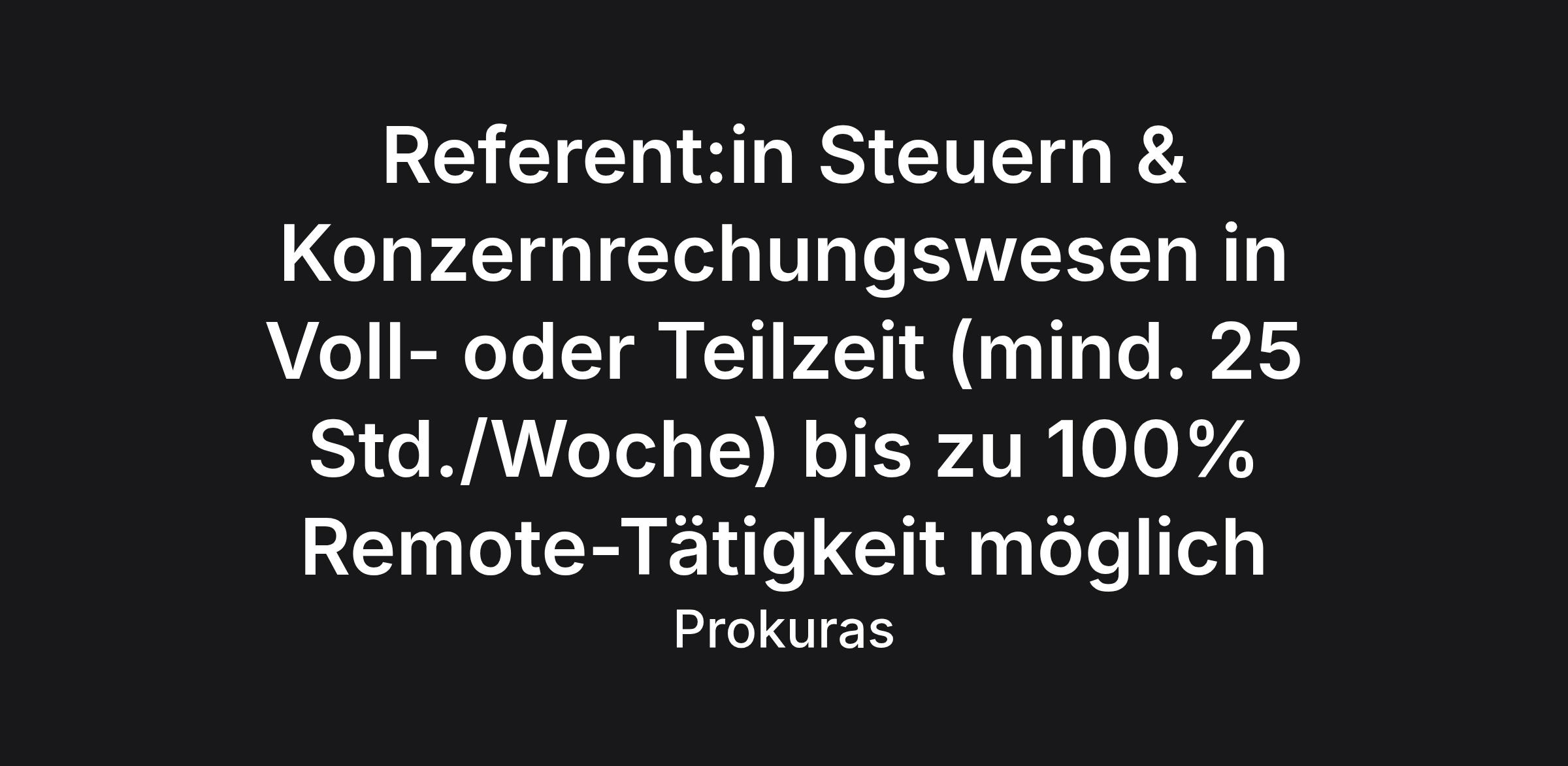 Referent:in Steuern & Konzernrechungswesen in Voll- oder Teilzeit (mind. 25 Std./Woche) bis zu 100% Remote-Tätigkeit möglich