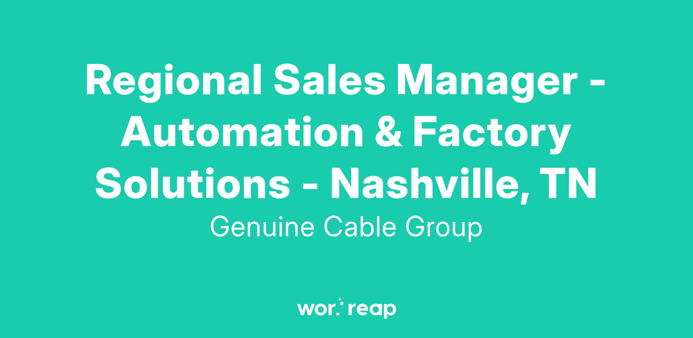 Regional Sales Manager - Automation & Factory Solutions - Nashville, TN
