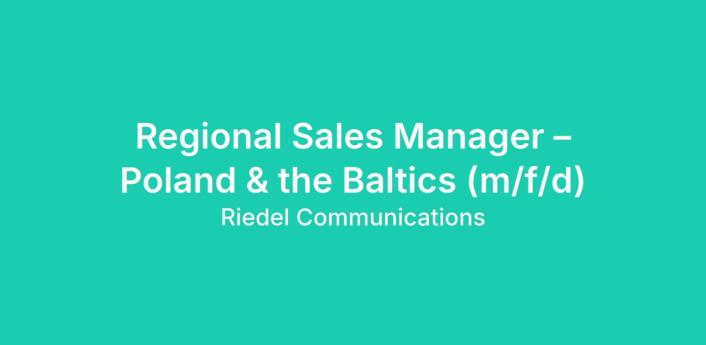 Join us as Regional Sales Manager – Poland & the Baltics (m/f/d) on this exciting journey within the Northern Europe team and experience the fascination of Riedel Communications in action.