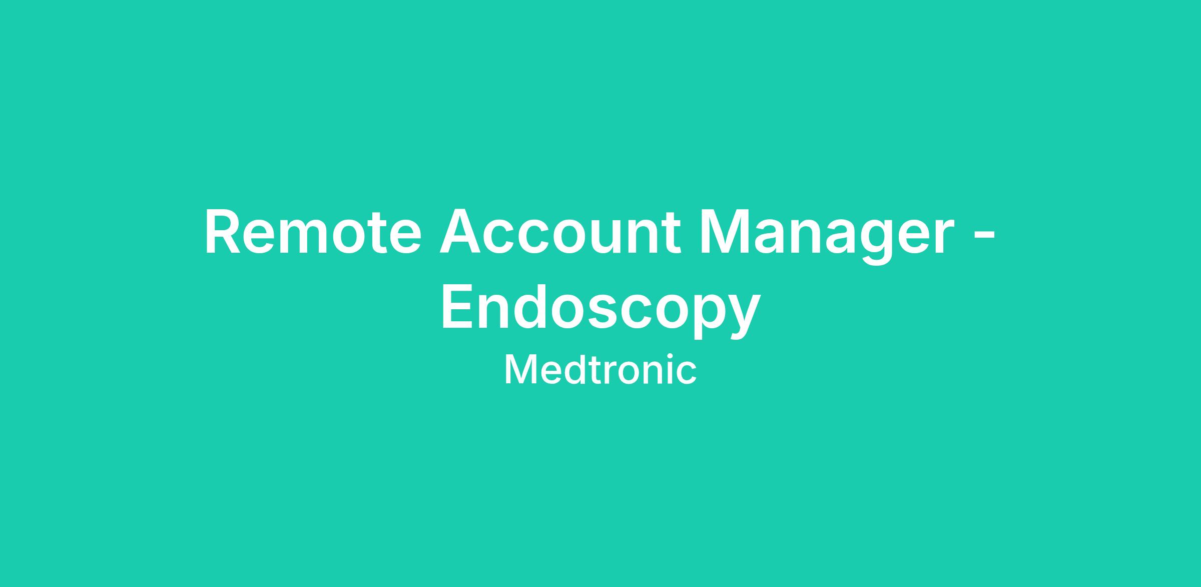 This Remote Account Manager II is a U.S. remote-based Medtronic Endoscopy Operating Unit sales position. In collaboration with a team of field Strategic Account Managers, the RAM will call on healthcare organizations, including hospitals, Ambulatory Surgery Centers, and practices in a defined geographic area. The RAM will serve as a customer facing product expert responsible for educating physicians and nurses on the clinical advantages of the entire GI product portfolio. The position is focused on expanding the utilization of endoscopy products through market development and sales-oriented activities.