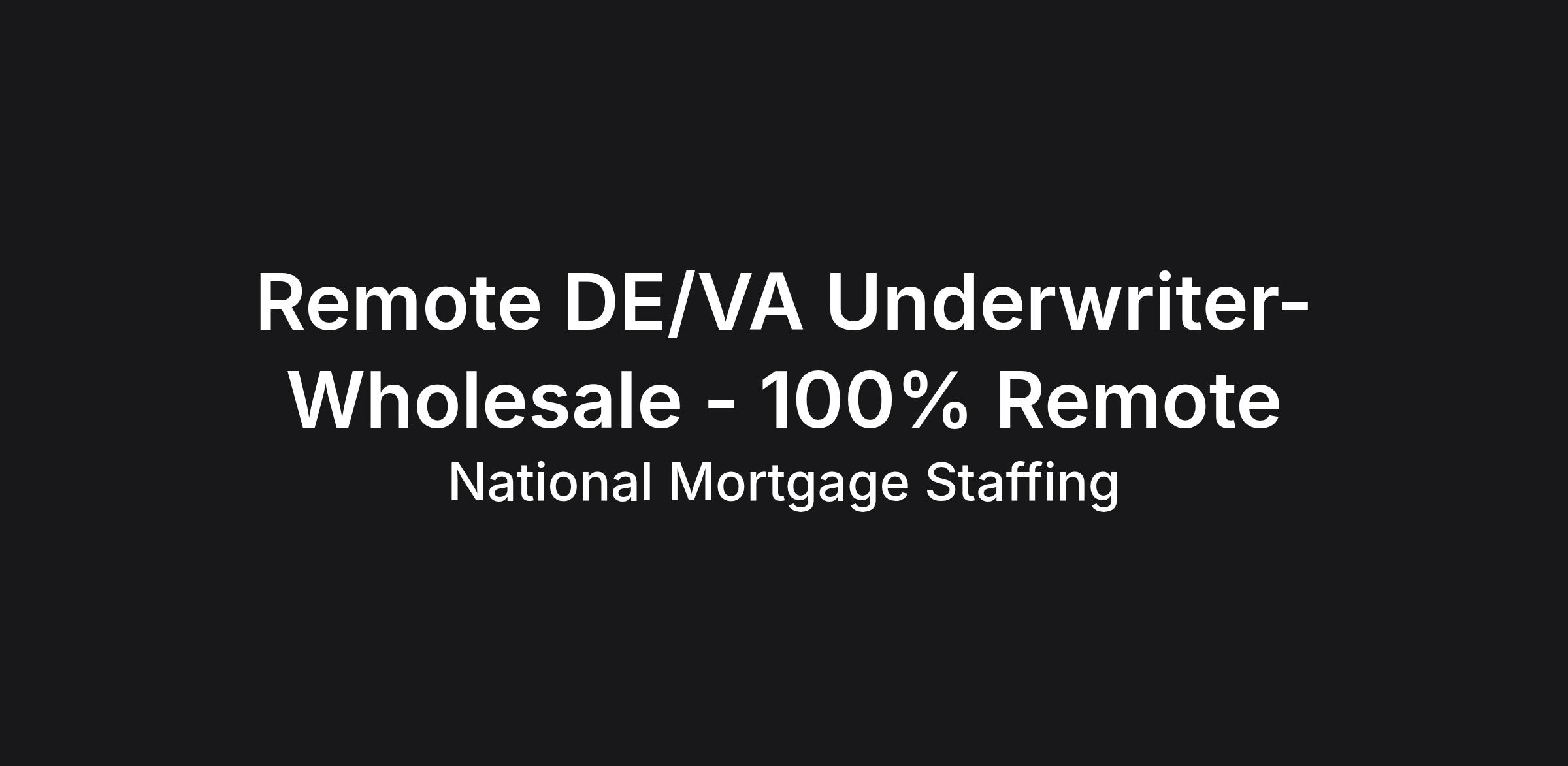 An established mortgage banker is seeking an experienced DE/VA Mortgage Underwriter with wholesale Experience to join its team.