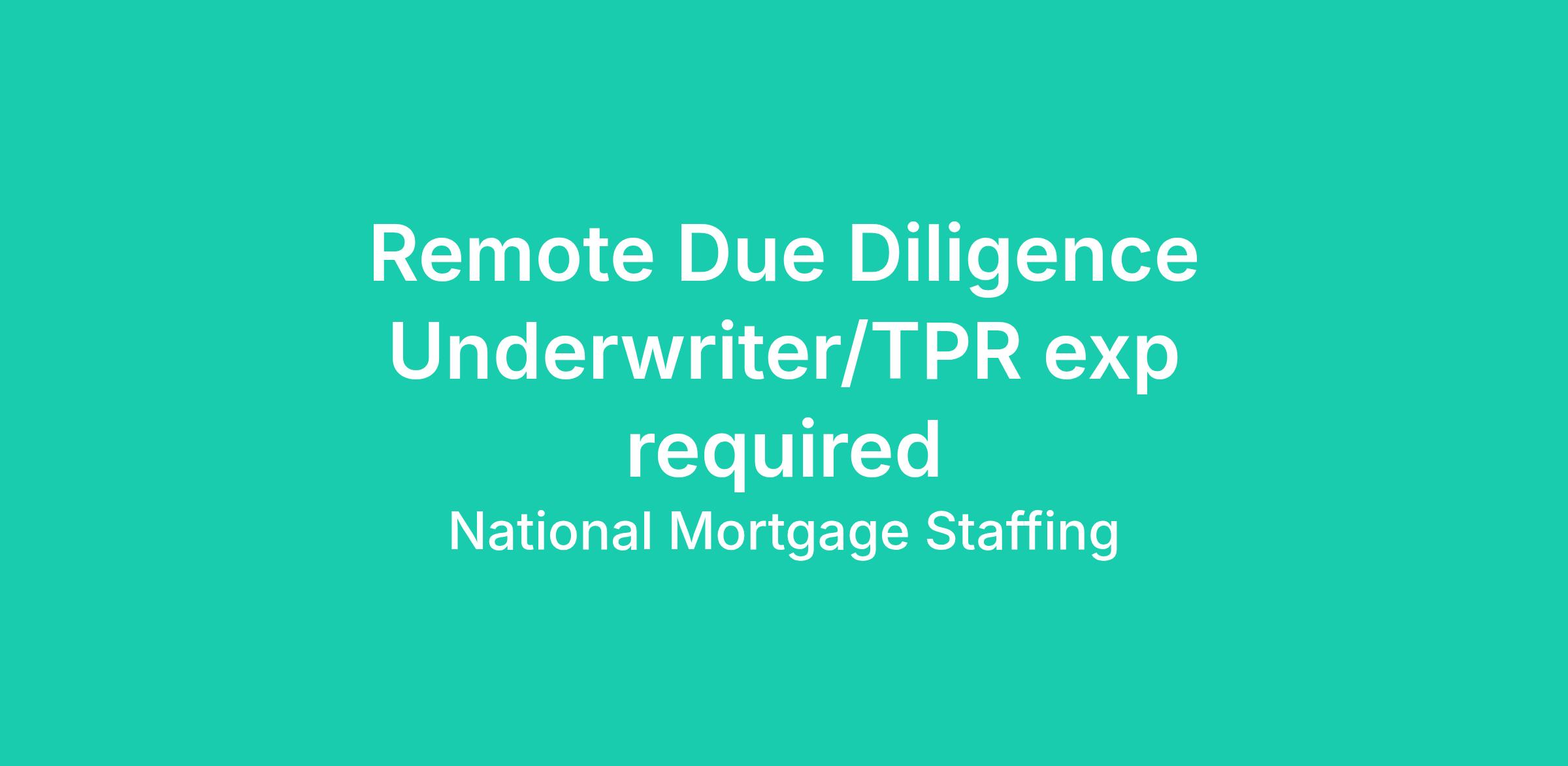 •4 years of recent experience Due Diligence Underwriting closed loans, for a TPR firm.