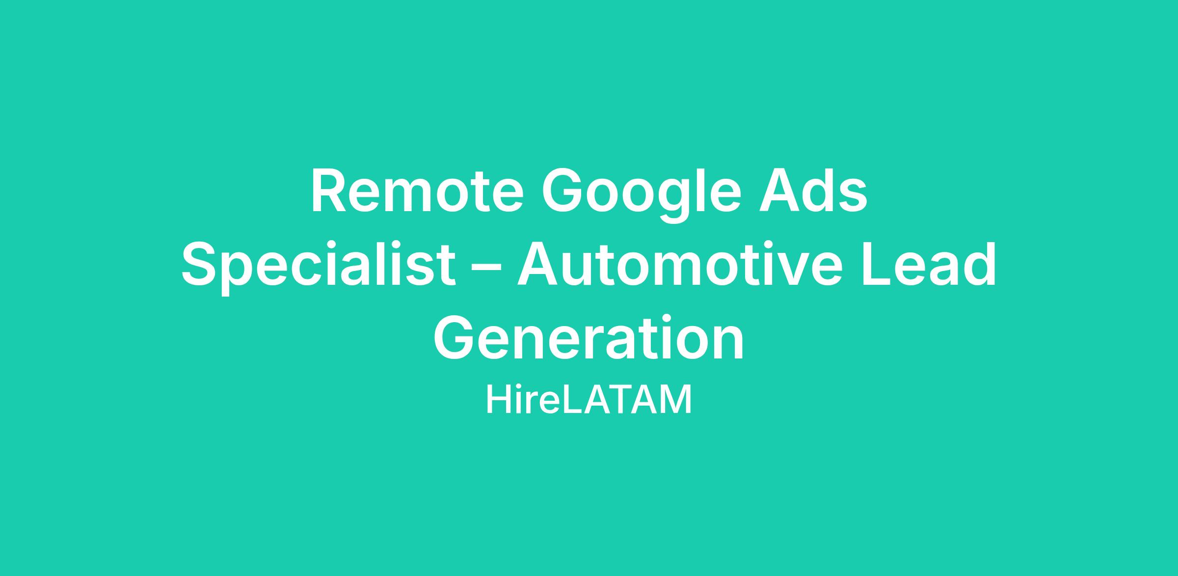 The Google Ads Specialist will be responsible for the strategy, implementation, and optimization of Google Ads campaigns for automotive dealerships across the United States. This role requires deep expertise in automotive inventory advertising, lead generation strategies, and advanced Google Ads structures including Search campaigns, Performance Max (PMAX), and Vehicle Listing Ads (VLA). The ideal candidate has at least five years of hands-on Google Ads experience in the automotive industry and a strong understanding of dealership KPIs such as cost per lead, conversion rate, and lead quality.