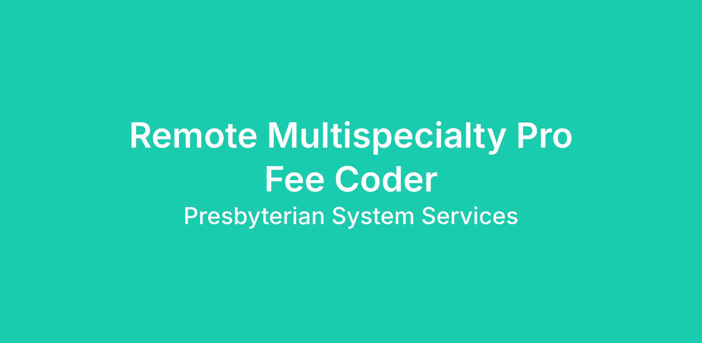 Presbyterian is seeking a talented Multispecialty Pro Fee Coder