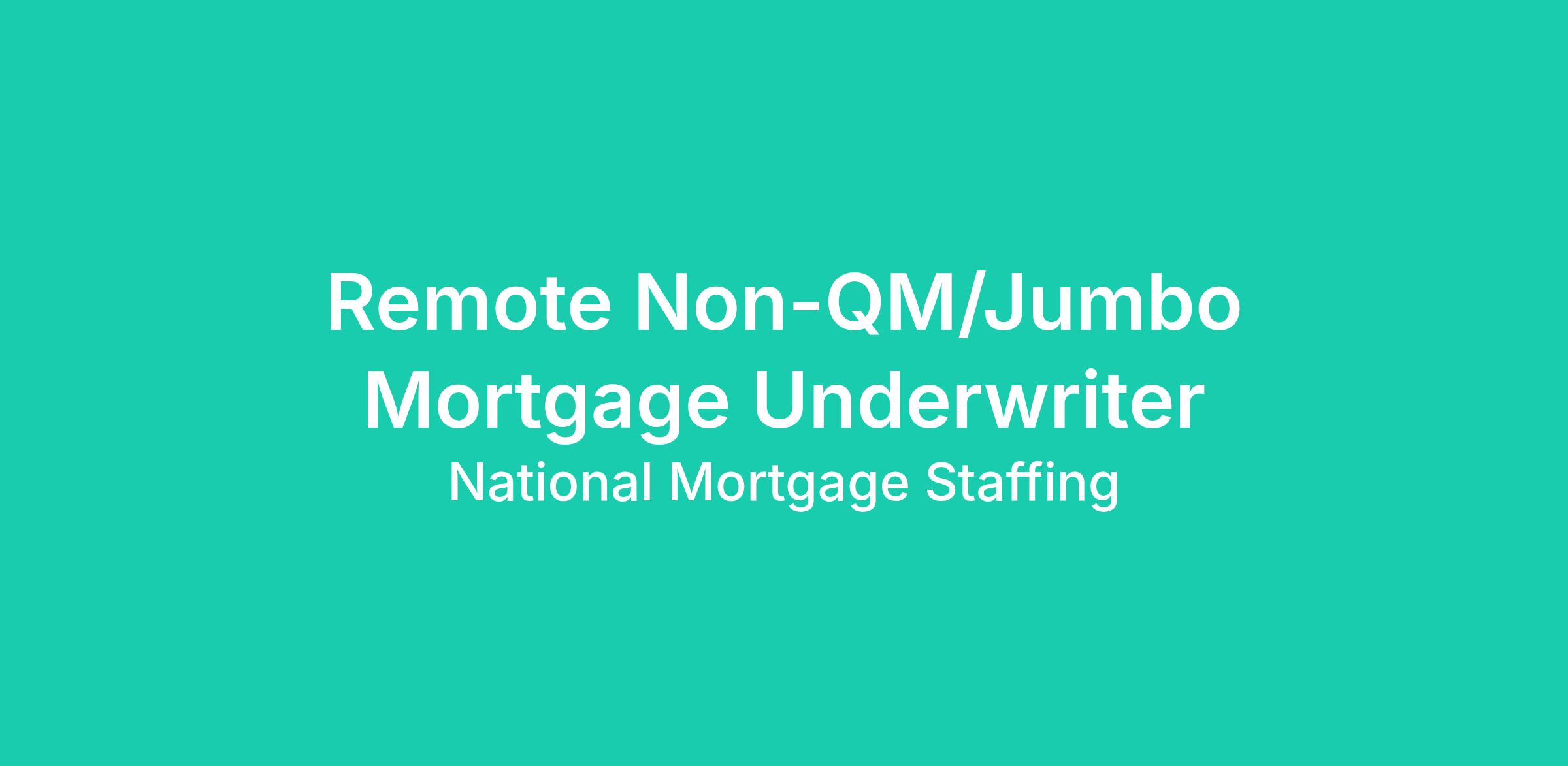 • At least 2 full year of hands-on underwriting experience with Non-QM and/or Jumbo loans