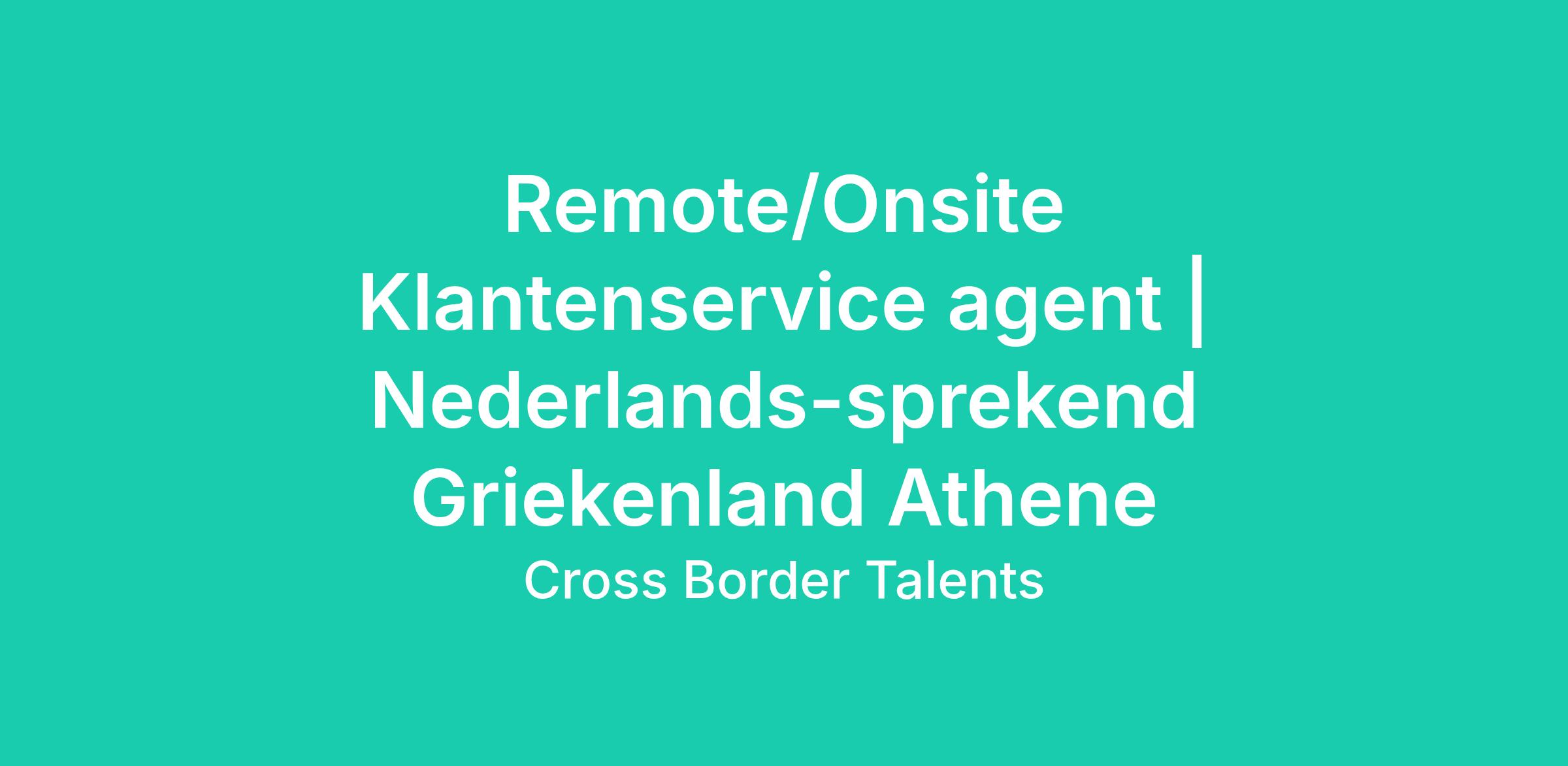 Start jouw Grieks avontuur! Klanten Adviseur Nederlands | Onsite of Remote in Athene