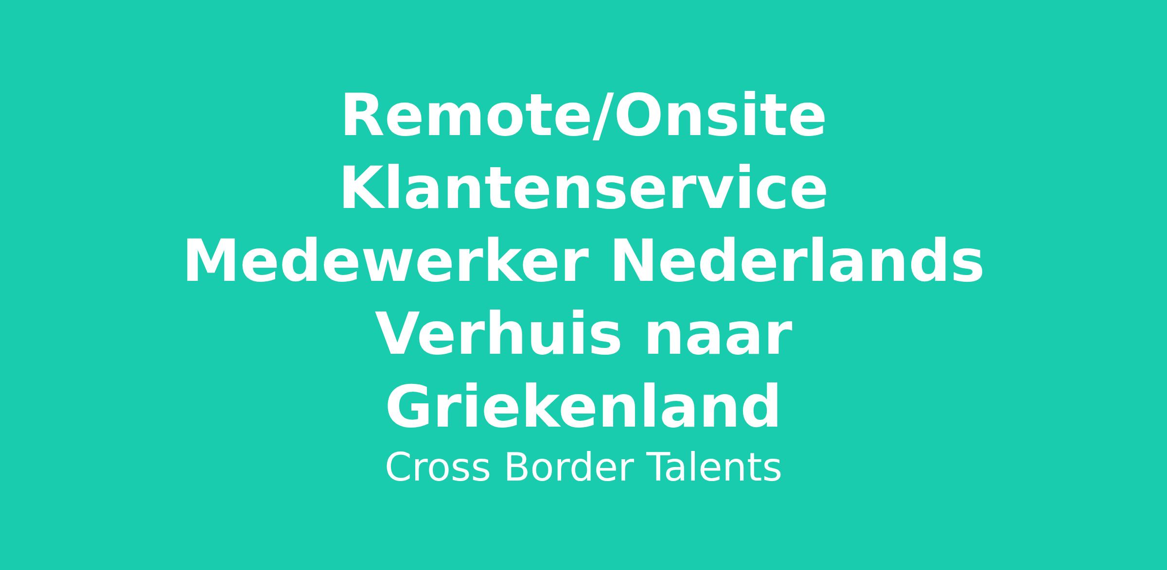 Cross Border Talents zoekt namens een toonaangevend techbedrijf Nederlands-sprekende klantenservice specialisten die willen werken en wonen in het zonnige Athene. Jij bent het eerste aanspreekpunt voor klanten via telefoon, e-mail en chat. Het unieke is dat je kunt kiezen: werken vanuit het moderne kantoor in Athene, of volledig vanuit huis zolang je in Athene woont.