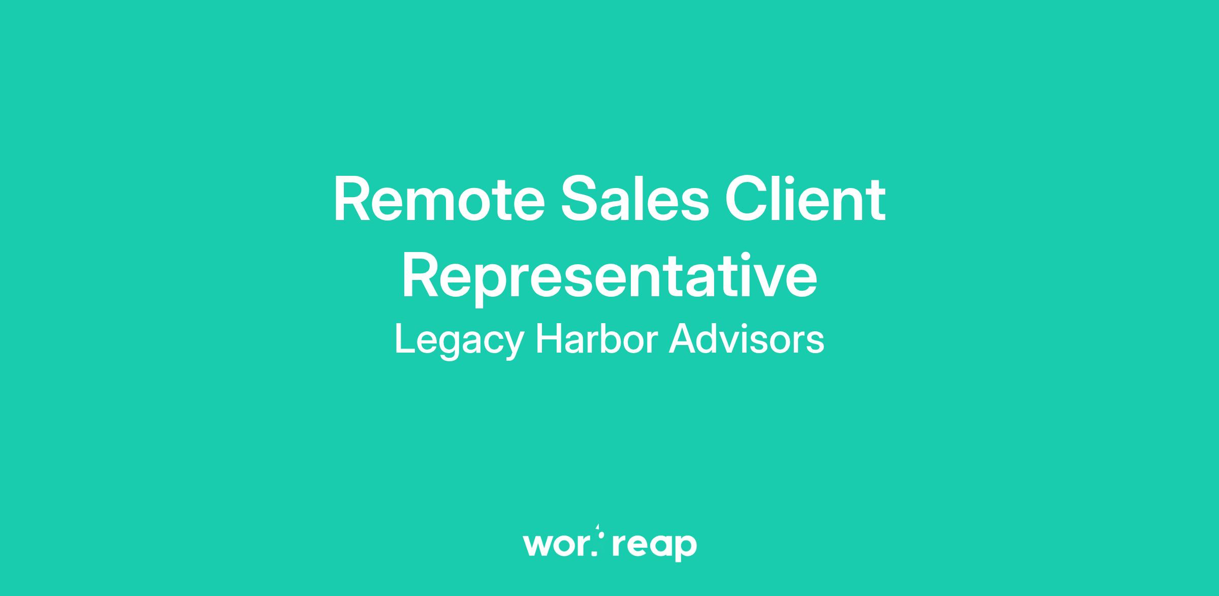 Are you a highly motivated self-starter who thrives in a flexible, remote environment? Legacy Harbor Advisors is looking for a Remote Sales Client Representative to join our team. This is a 100% commission-based, 1099 independent contractor role that offers unlimited earning potential and the freedom to build your career on your own terms.