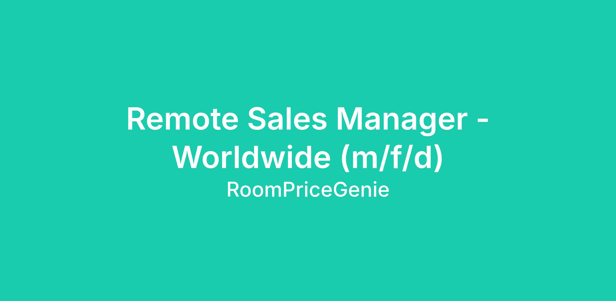 Ready to make a real commercial impact? As a Sales Manager for Rest of the World (markets where we don't have a full dedicated team), you will be the driving force behind converting interested hoteliers into long-term RoomPriceGenie customers and building up a strong network.