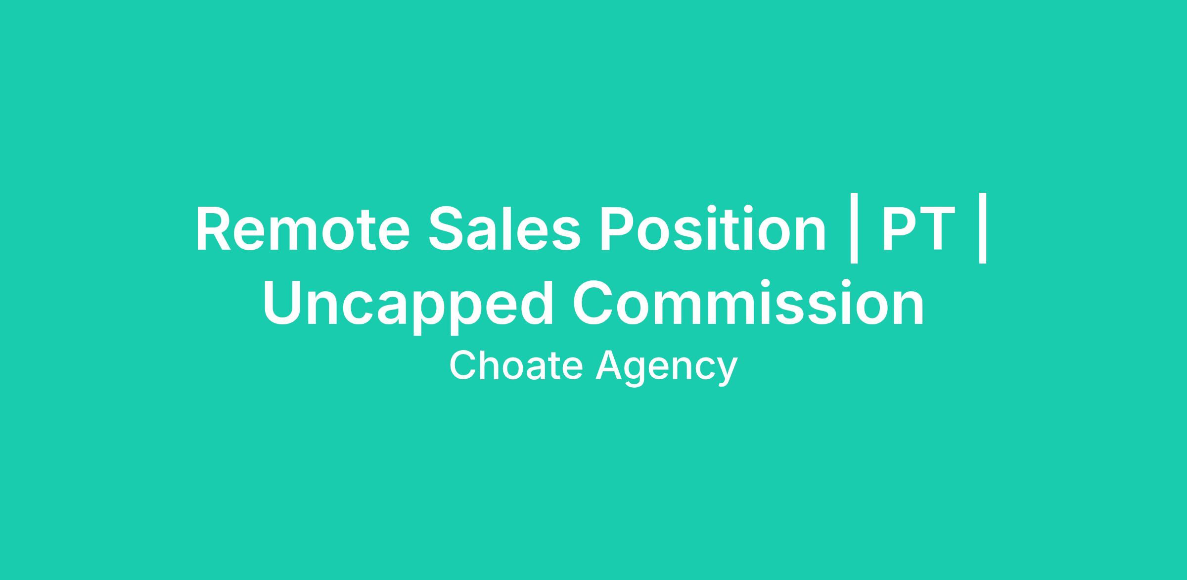 Remote Sales Position | PT | Uncapped Commission