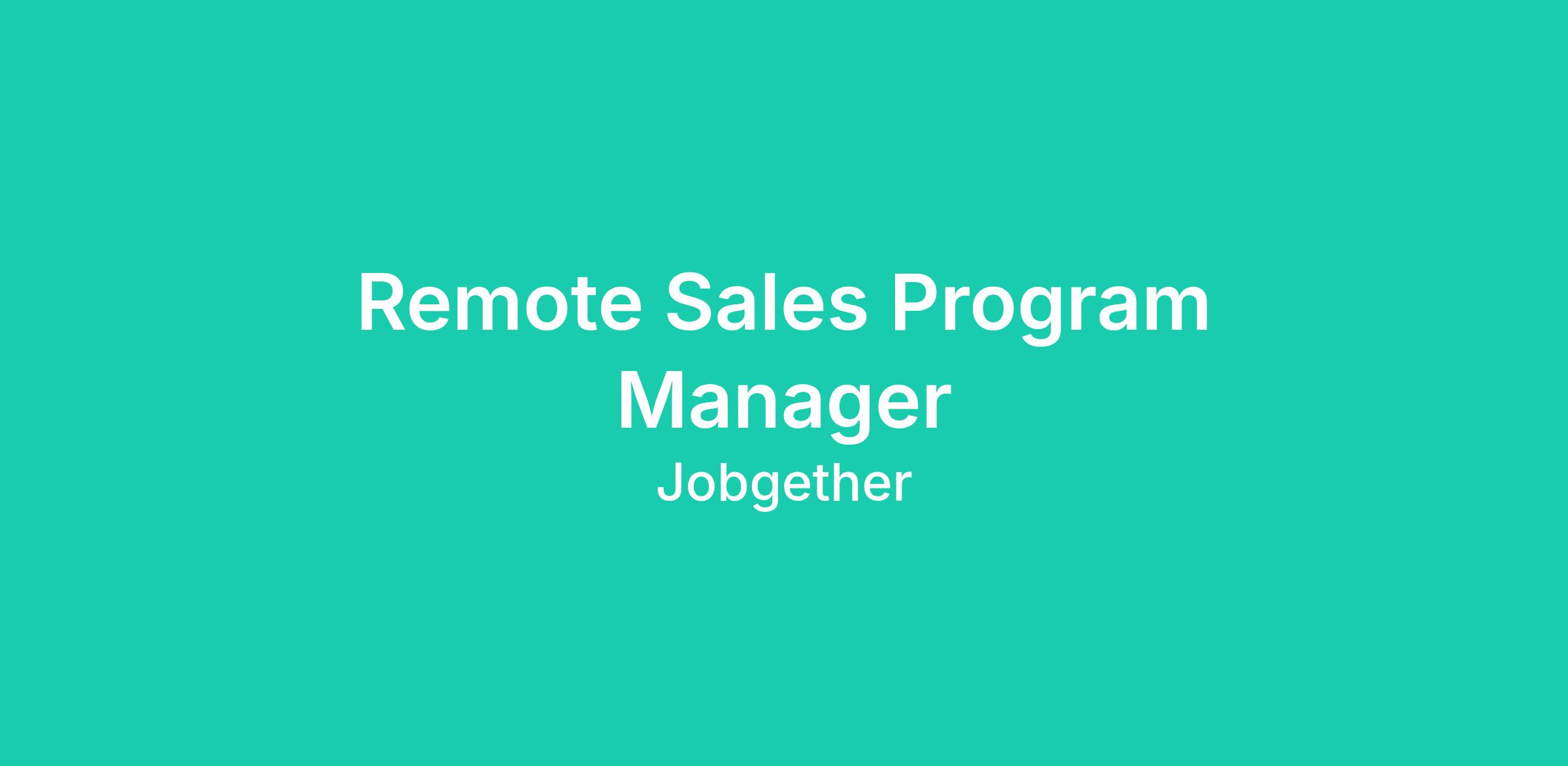 This position is posted by Jobgether on behalf of a partner company. We are currently looking for a Sales Program Manager - REMOTE. In this role, you will be instrumental in driving sales effectiveness and revenue growth for our rentals business. You will work closely with sales leaders and cross-functional teams to design and implement programs that enhance sales performance. Your strategic mindset will allow you to identify business needs and execute initiatives that deliver measurable impact. By leading high-impact sales programs from concept to optimization, you'll play a key role in transforming the partner experience and supporting go-to-market strategies. This is an exciting opportunity to make a difference in a collaborative environment while working remotely.