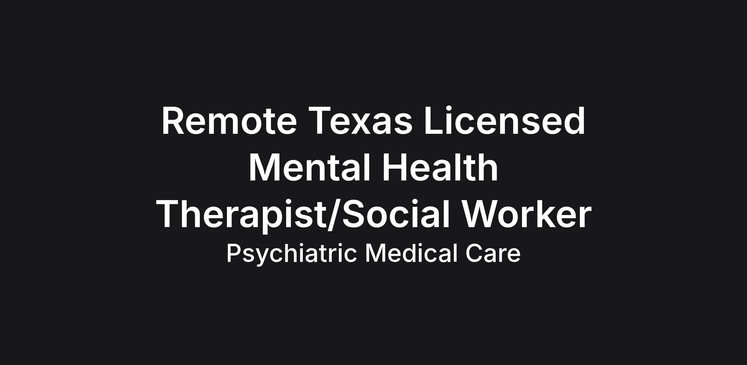 Remote Texas Licensed Mental Health Therapist/Social Worker