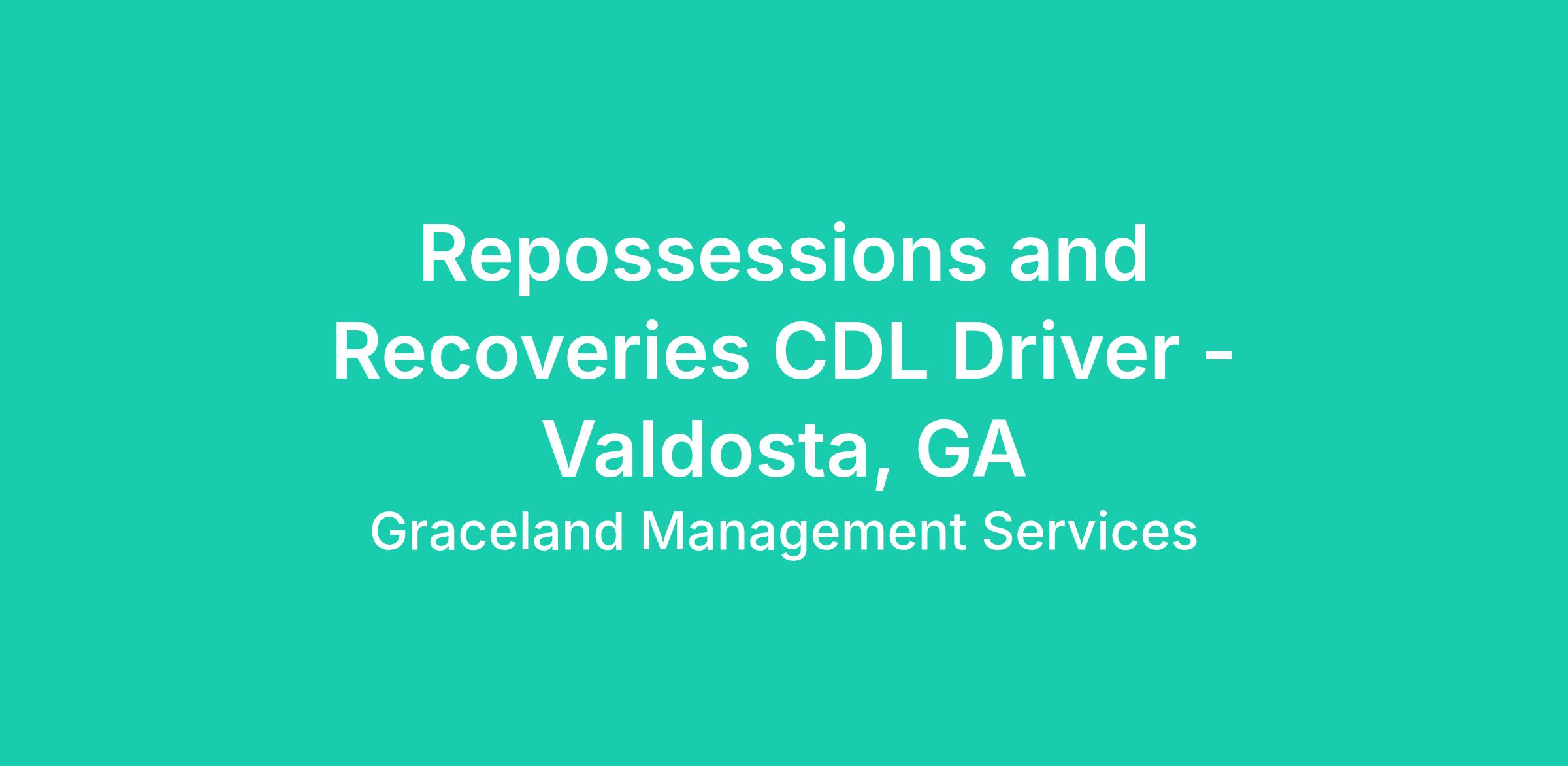 Repossessions and Recoveries CDL Driver - Valdosta, GA