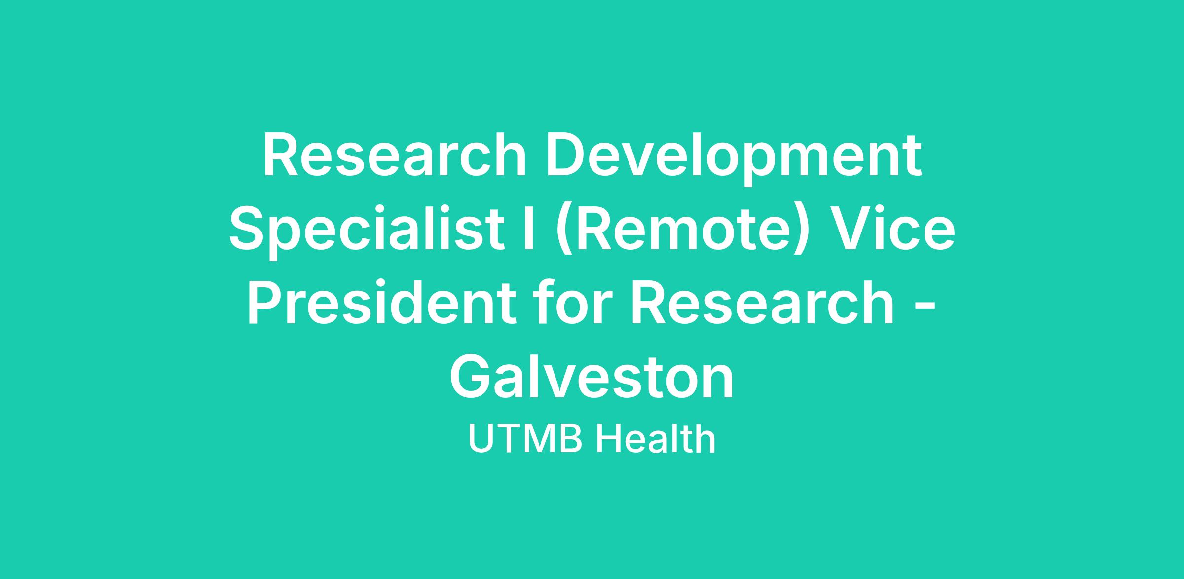 Research Development Specialist I (Remote) Vice President for Research - Galveston