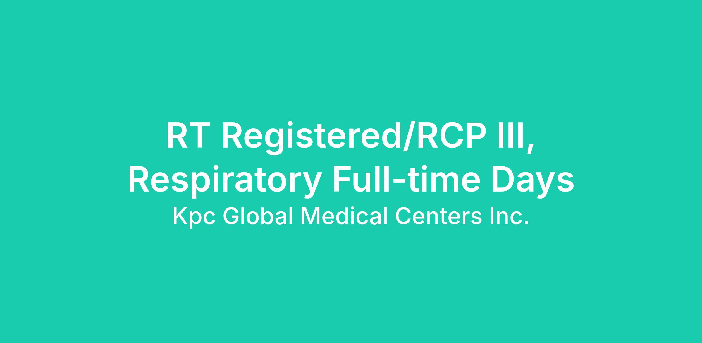 RT Registered/RCP III, Respiratory Full-time Days