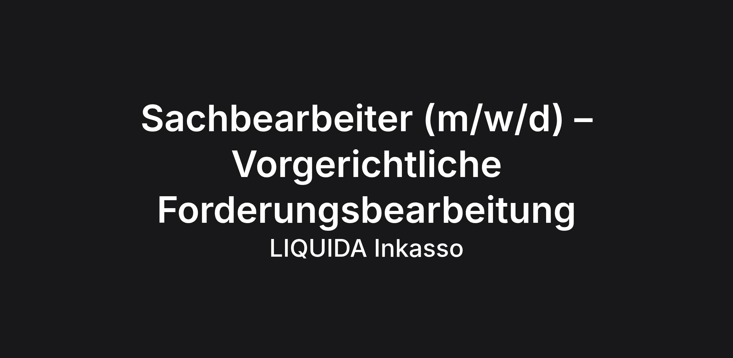 Sachbearbeiter (m/w/d) – Vorgerichtliche Forderungsbearbeitung