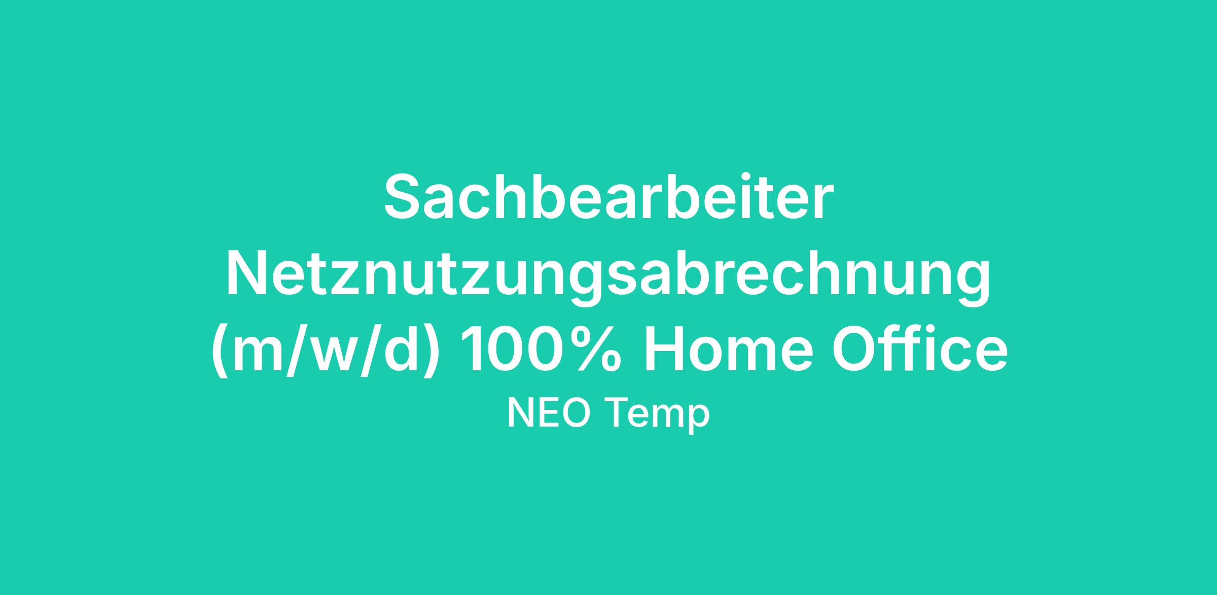 Sachbearbeiter Netznutzungsabrechnung (m/w/d) 100% Home Office in